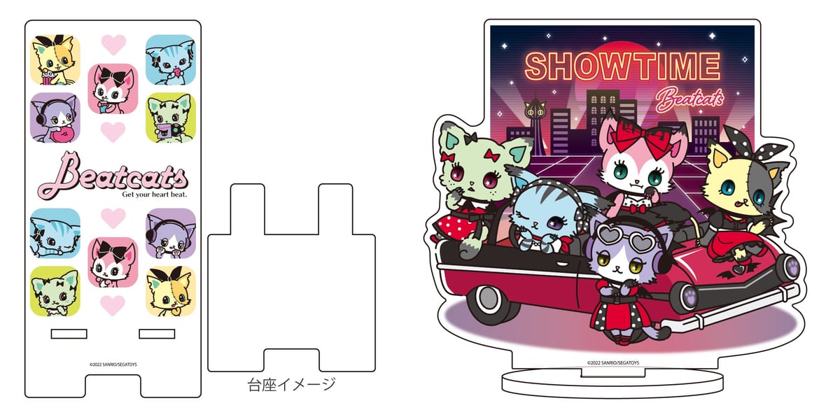 組み立てて使える「スマキャラスタンド」に、ステージに立つ「Beatcats」をデザインした「キャラアクリルフィギュア」