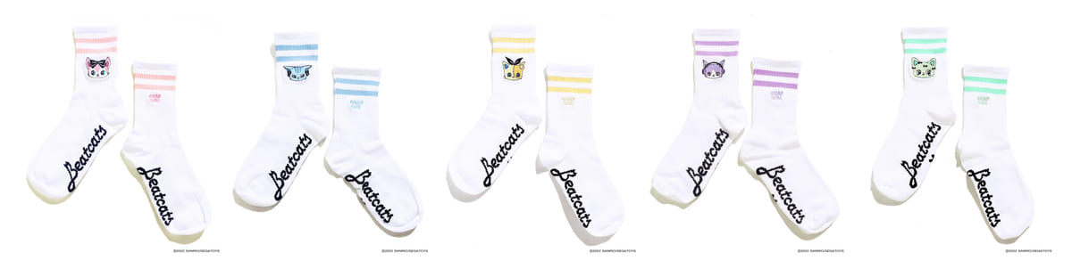 シンプルな白のソックスに「Beatcats」のお顔が刺繍された「Beatcatsコラボラインソックス」