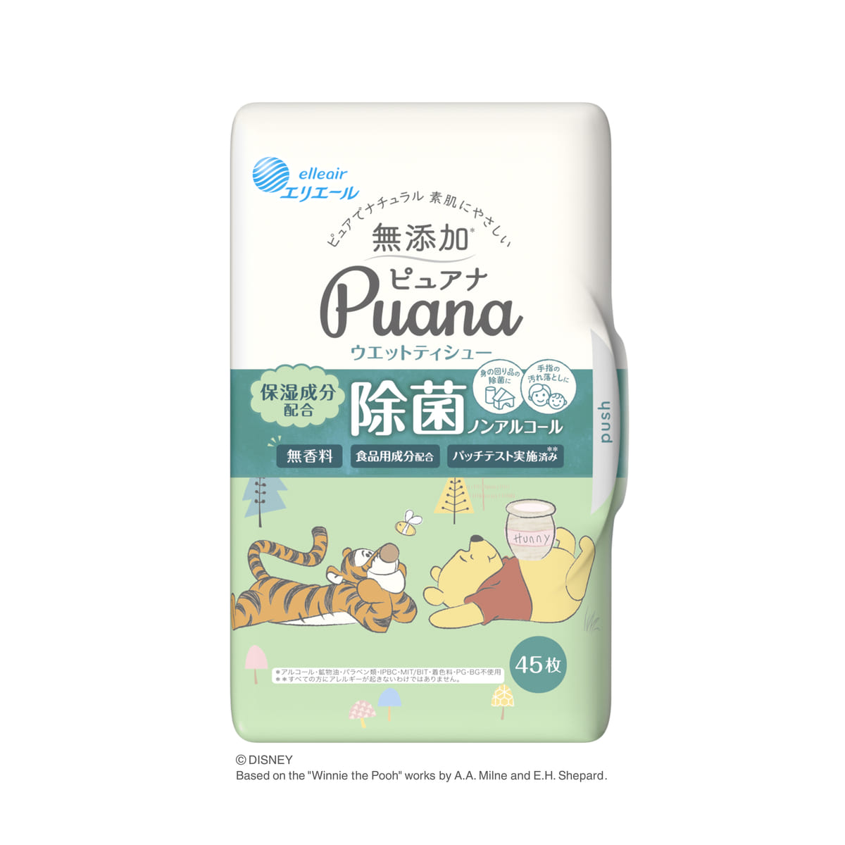無添加処方はそのままに、新たに保湿成分を配合したアルコール不使用の「Puana(ピュアナ)ウエットティシュー」から、ディズニーの人気キャラクター『くまのプーさん』デザインが登場!