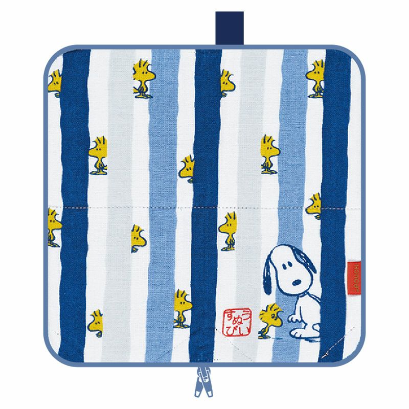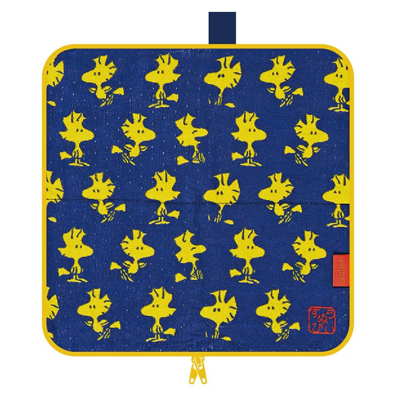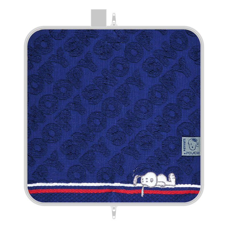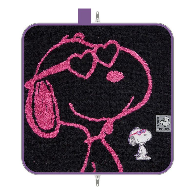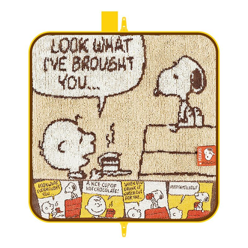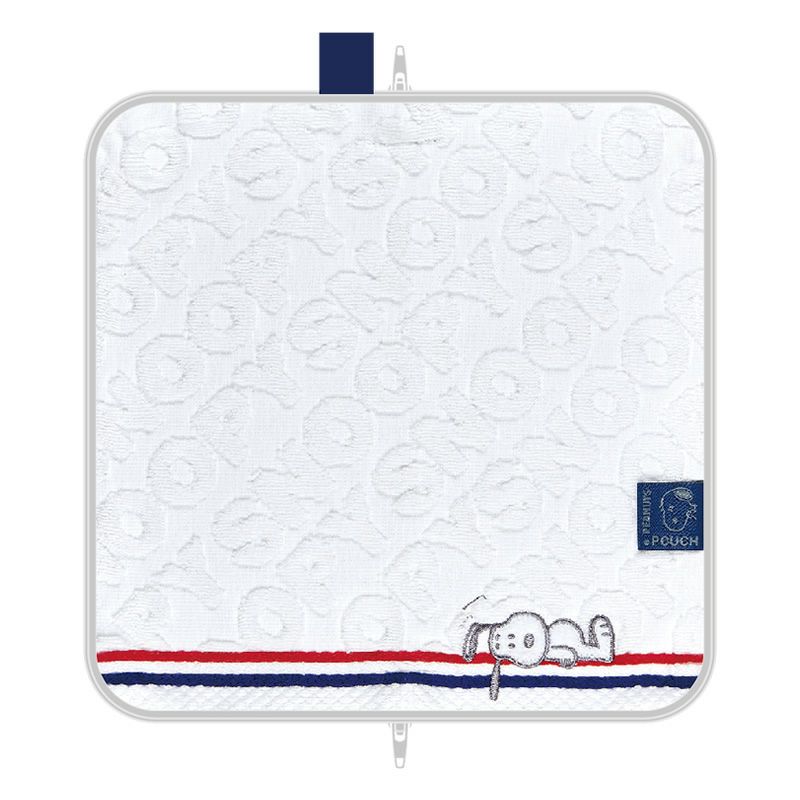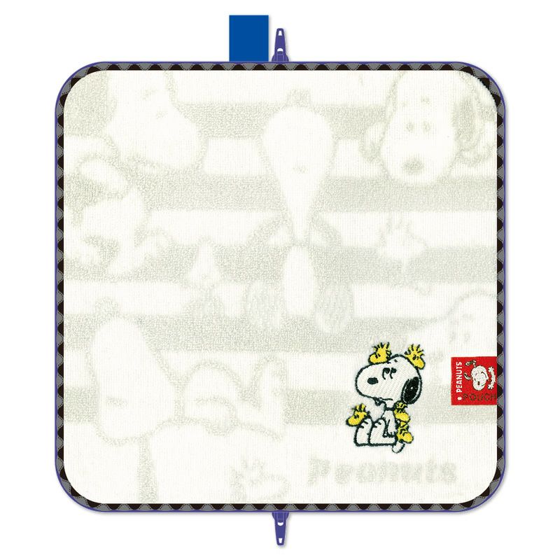 タオルの織り方を切り替えにして『PEANUTS』のコミック風にデザインされたどっとポーチ。