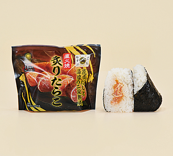 昆布だしと藻塩の2段階熟成を行ったたらこを使用した「ごちむすび 炙りたらこ」