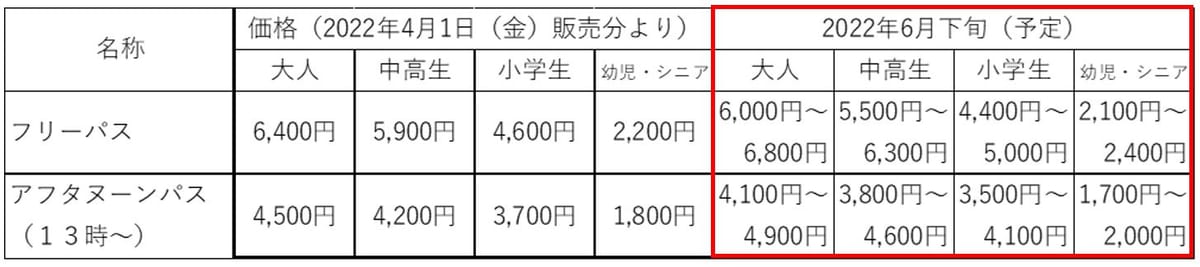 今回、フリーパスチケットに、時期や曜日など日ごとに異なる価格を設定する「ダイナミックプライシング」が導入されます。