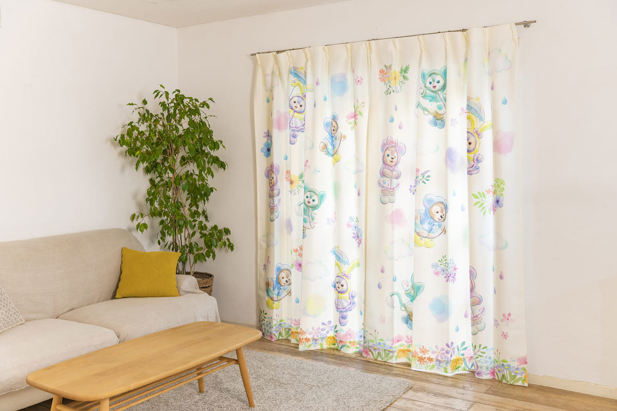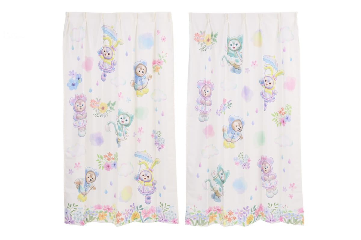 東京ディズニーシー“ダッフィー&フレンズのビューティフル・レイニーデイズ”デザインのカーテン。