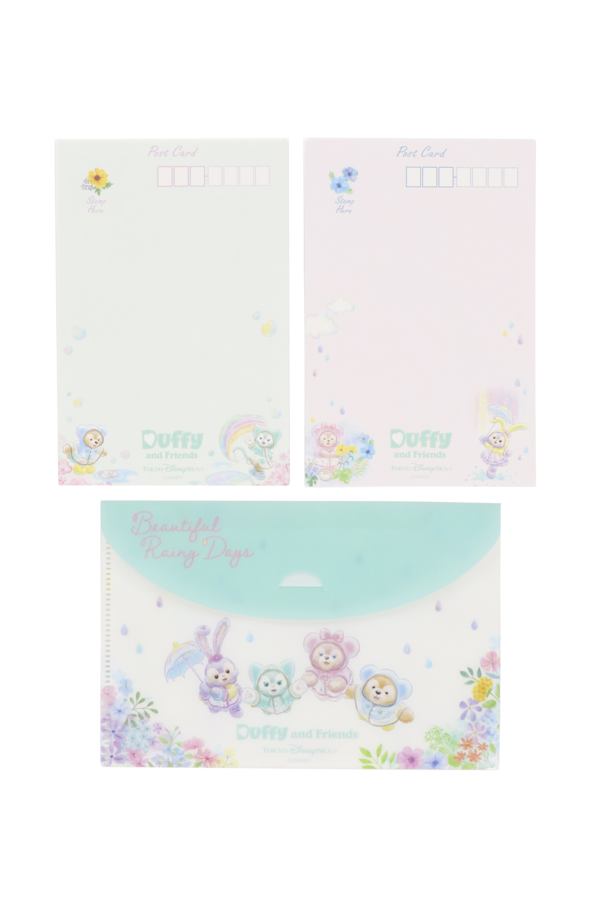 東京ディズニーシー“ダッフィー&フレンズのビューティフル・レイニーデイズ”ポストカード&クリアホルダー2