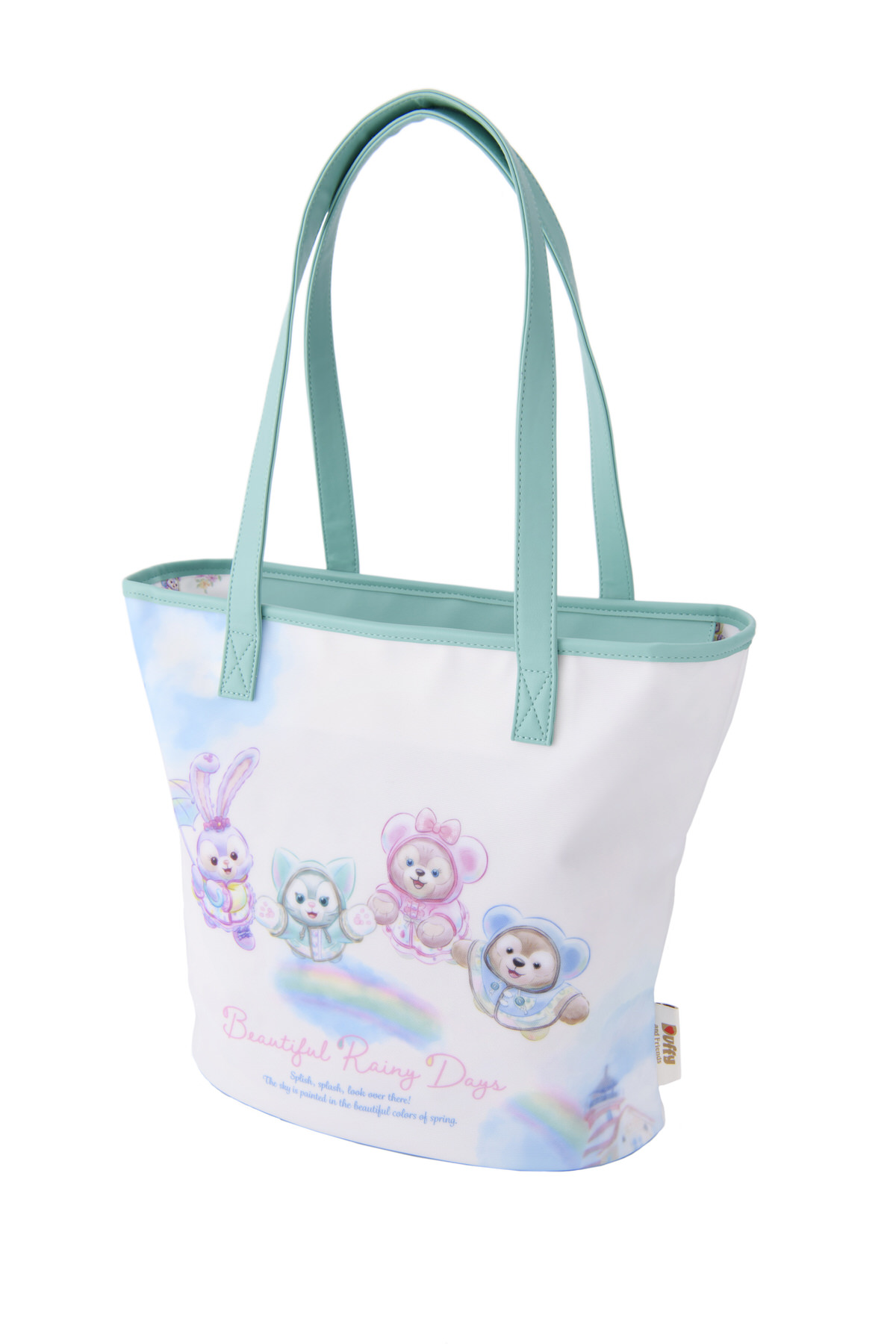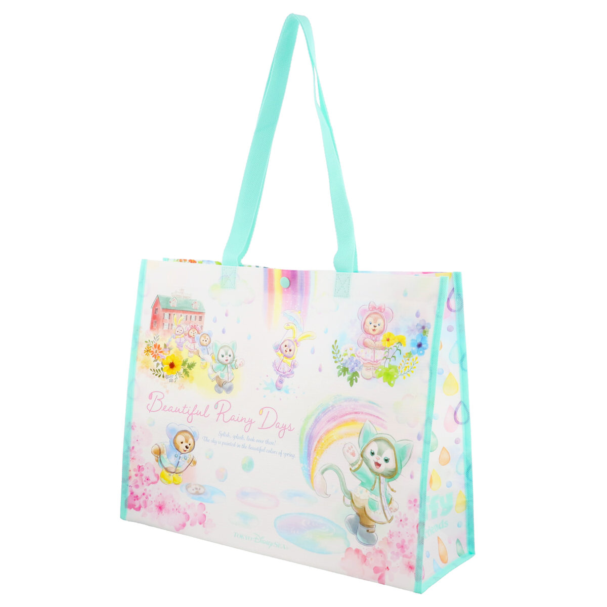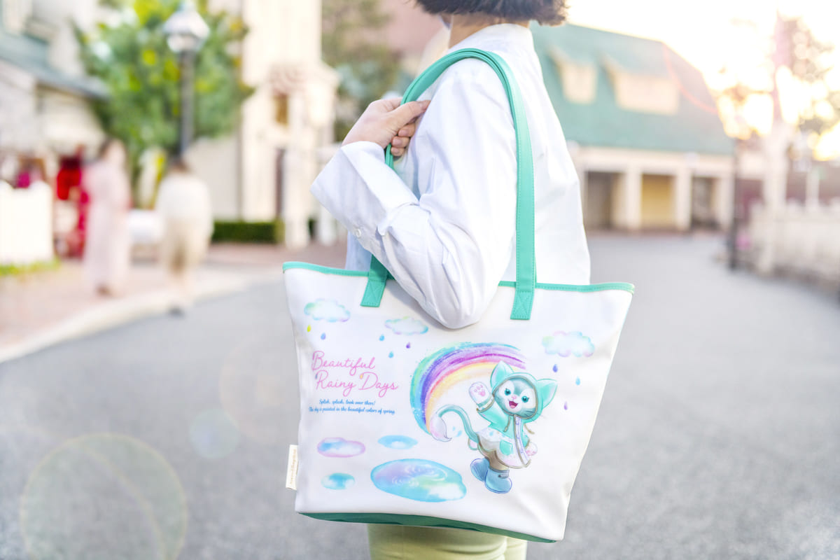 東京ディズニーシー“ダッフィー&フレンズのビューティフル・レイニーデイズ”デザインのトートバッグ。