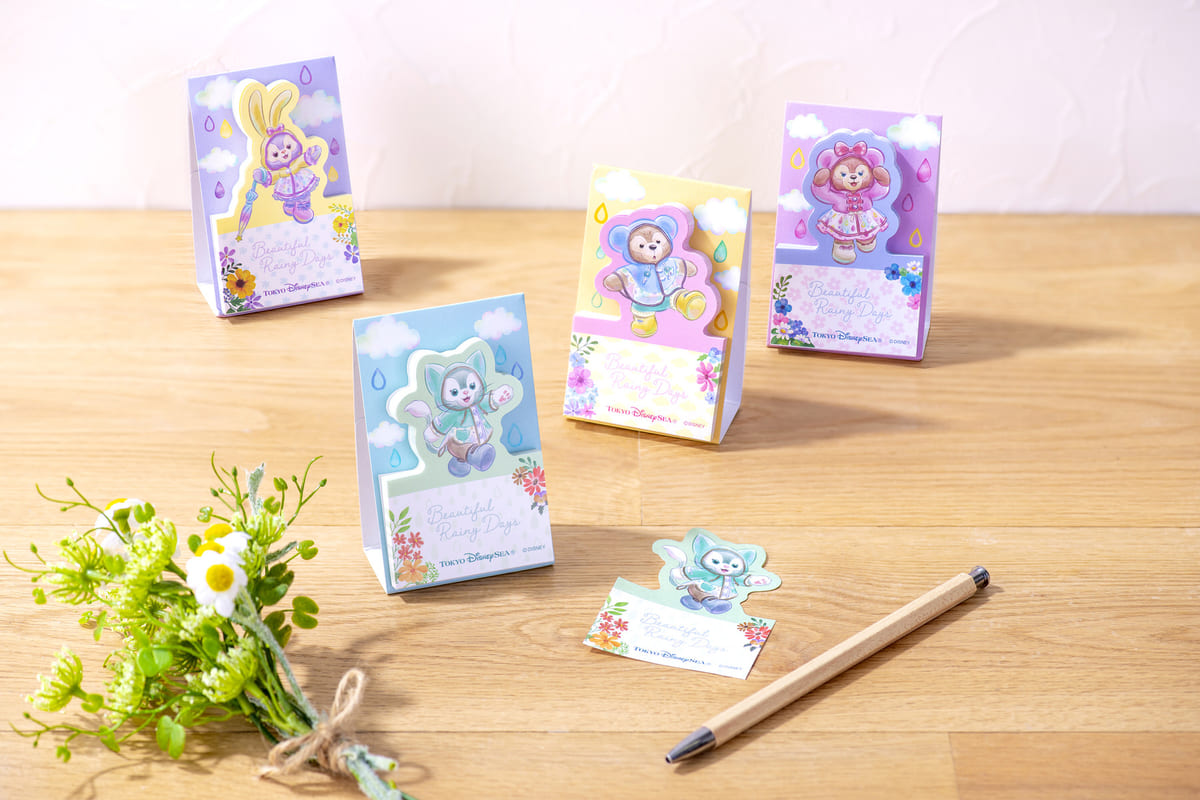 東京ディズニーシー“ダッフィー&フレンズのビューティフル・レイニーデイズ”デザインのメモセット。