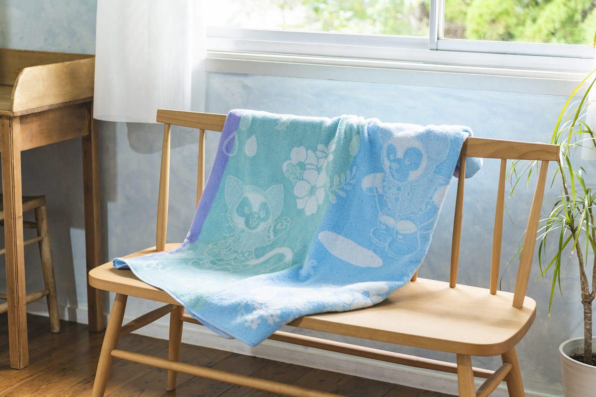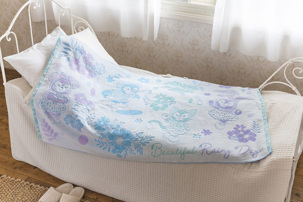 東京ディズニーシー“ダッフィー&フレンズのビューティフル・レイニーデイズ”デザインのタオルケット。