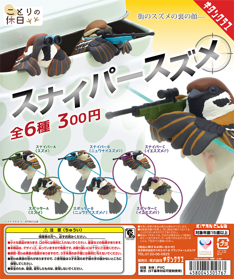 キタンクラブのカプセルトイに「ことりの休日 スナイパースズメ」が登場。