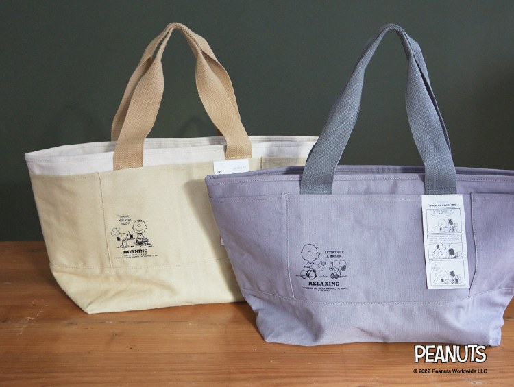 フロントにさり気なく「スヌーピー」と「チャーリー・ブラウン」がデザインされた、保温・保冷機能つきの帆布トートバッグです。