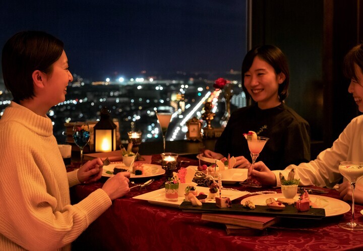 東京の夜景が一望できるホテル最上階のダイニングバーで料理とドリンクが堪能できる、女子会にもピッタリなプランです☆