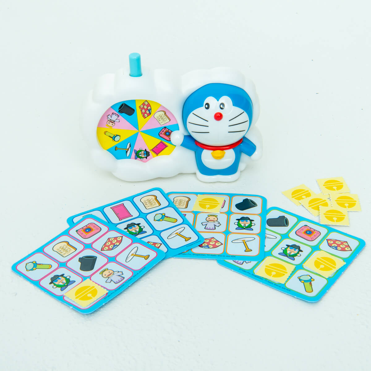 ルーレットが指したひみつ道具が自分のカード上にあるか探し、タテ・ヨコナ・ナメのいずれかに3つ揃った人が勝ち!