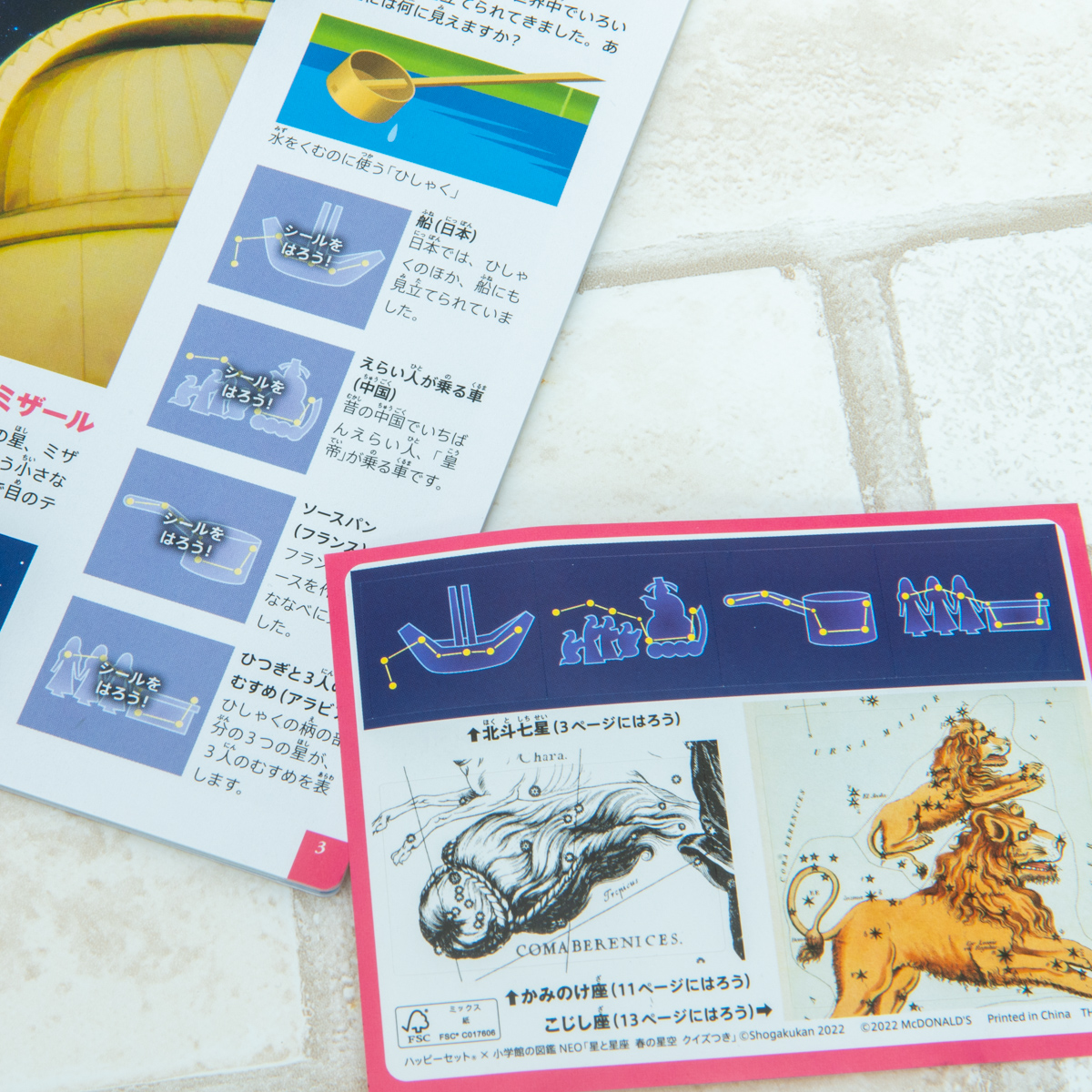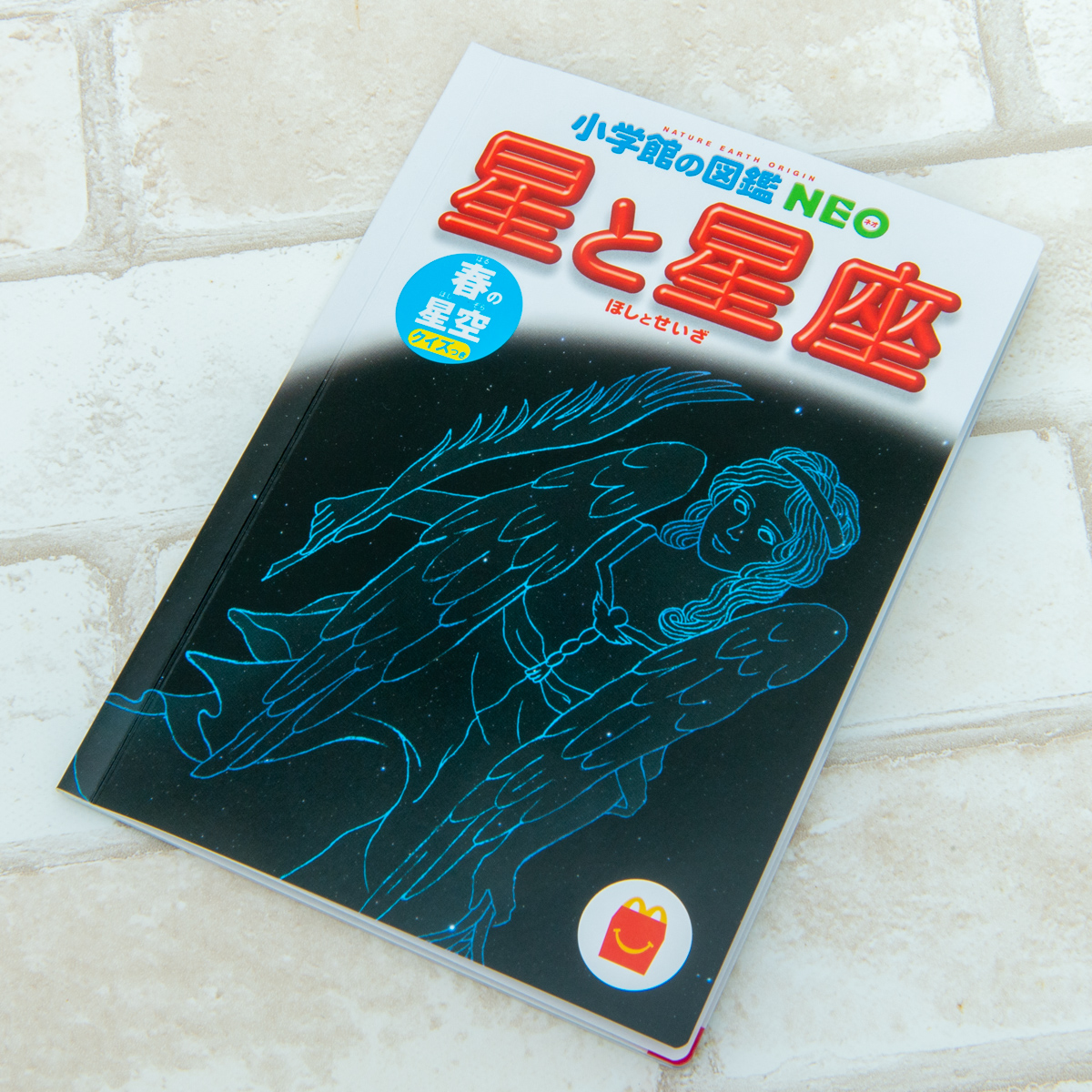 小学館の図鑑 NEOが展開する、ハッピーセット用に作成された小さいサイズのミニ図鑑から「星と時座/春の旦空クイズつき」が登場。