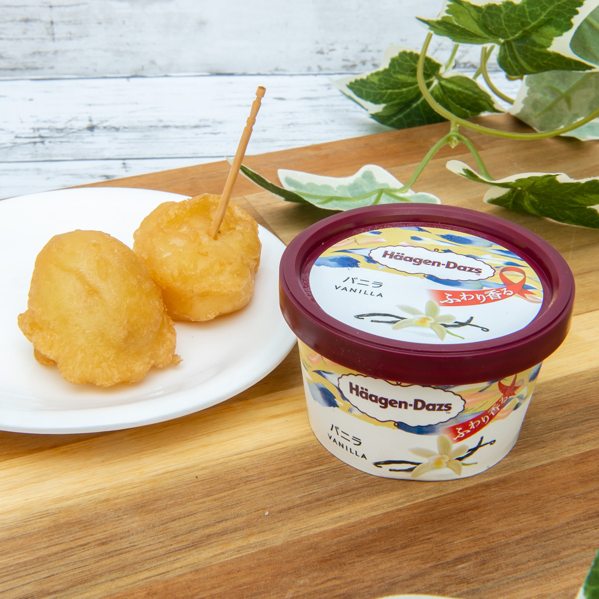 天ぷらとアイスクリームの一見不思議な組み合わせ。