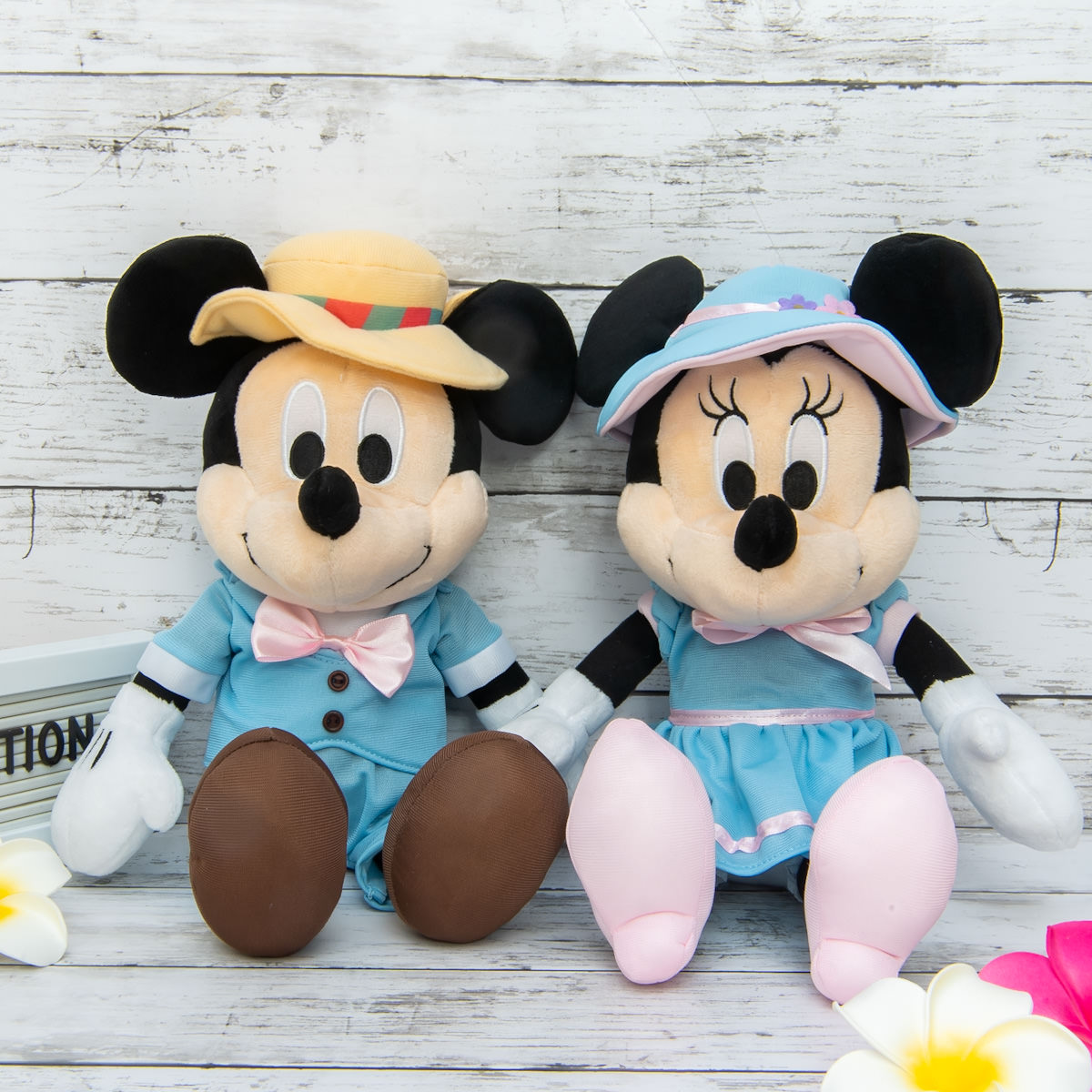 「ミッキーマウス」と「ミニーマウス」のぬいぐるみ2体セット。