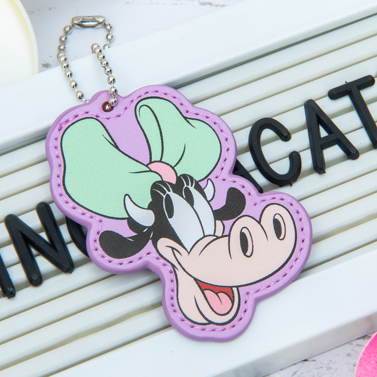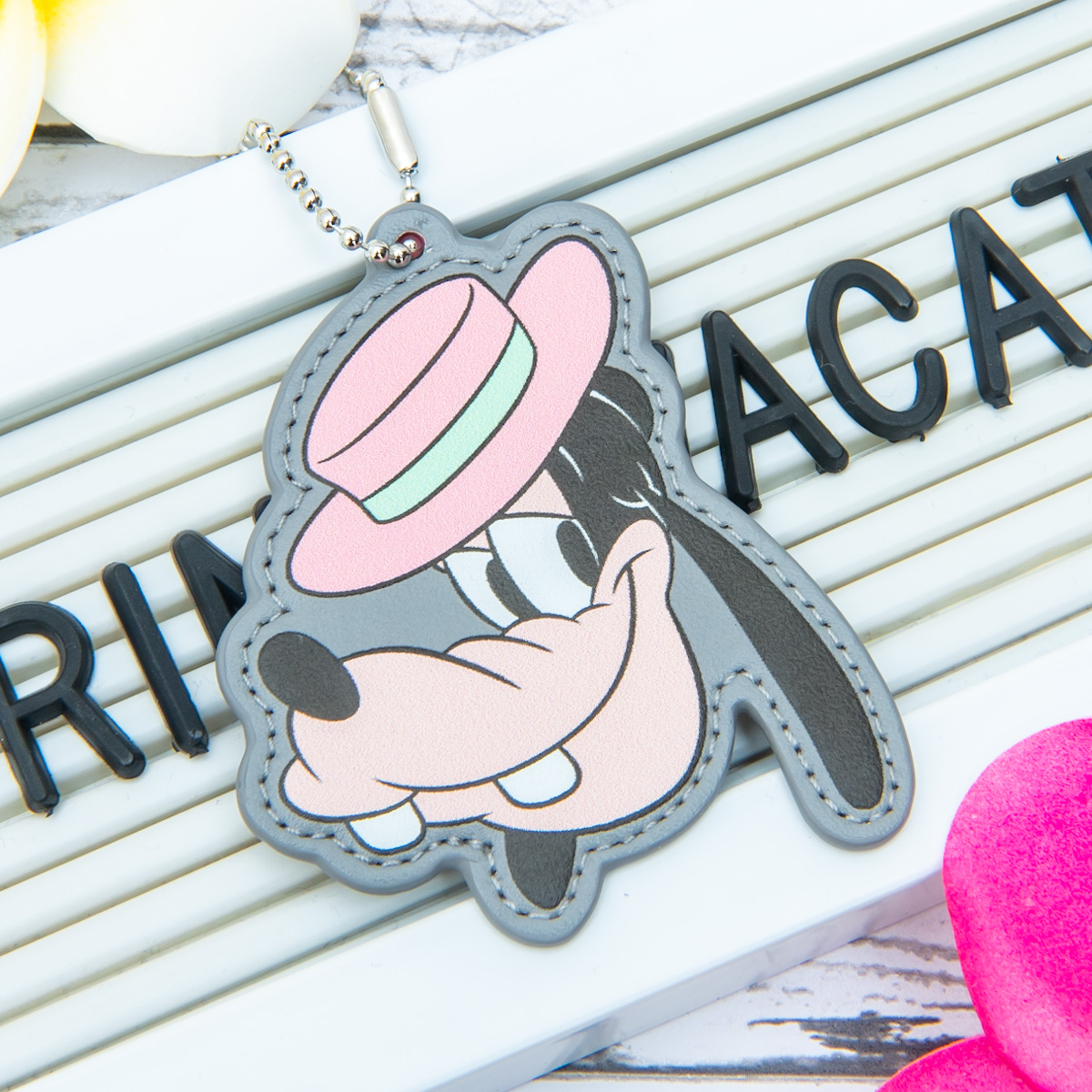 グレーをベースカラーにした「グーフィー」のネームチャーム。