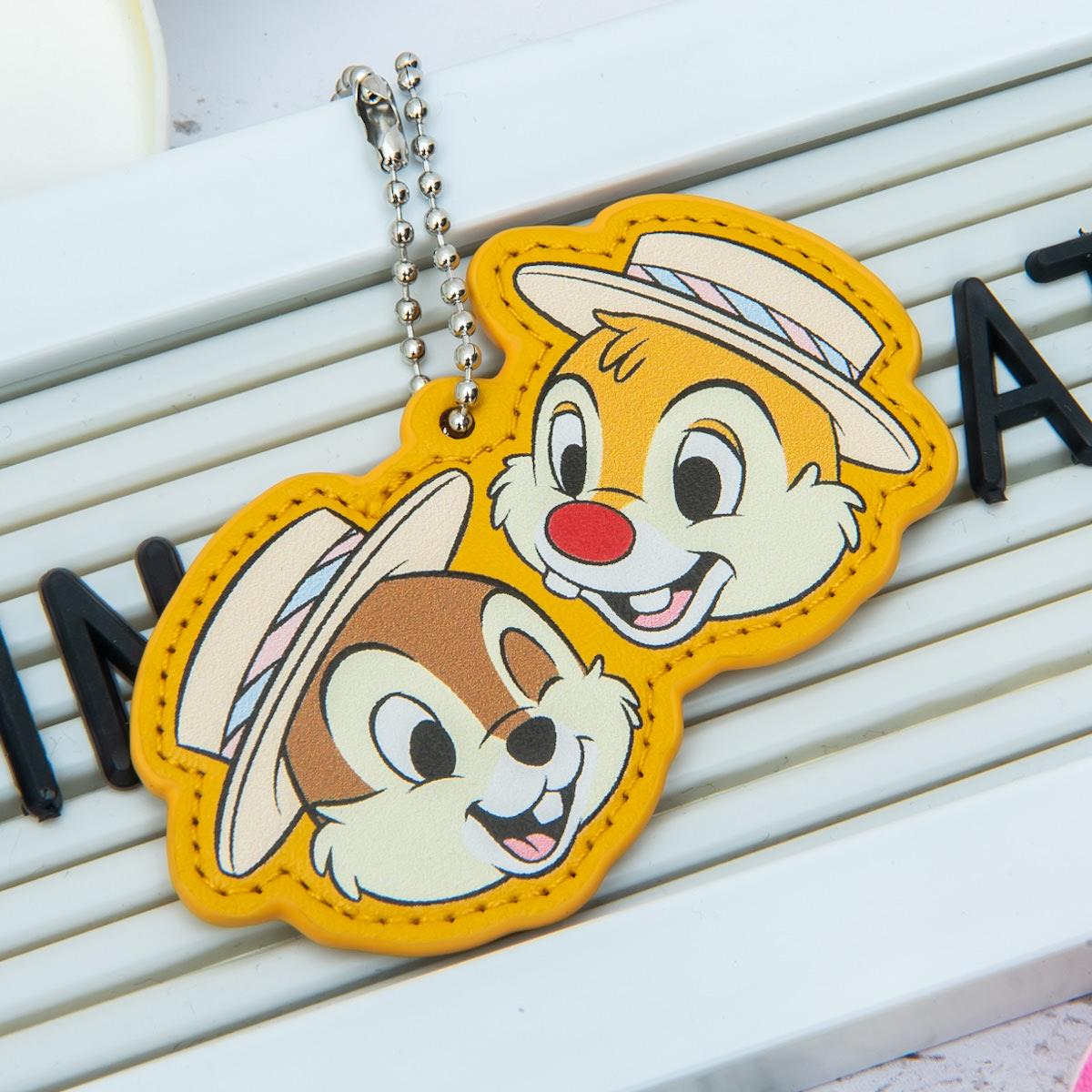 仲良しコンビの「チップとデール」の顔を配置したネームチャーム。