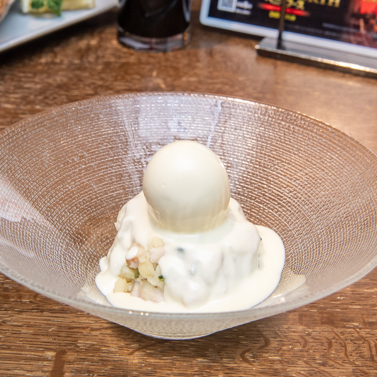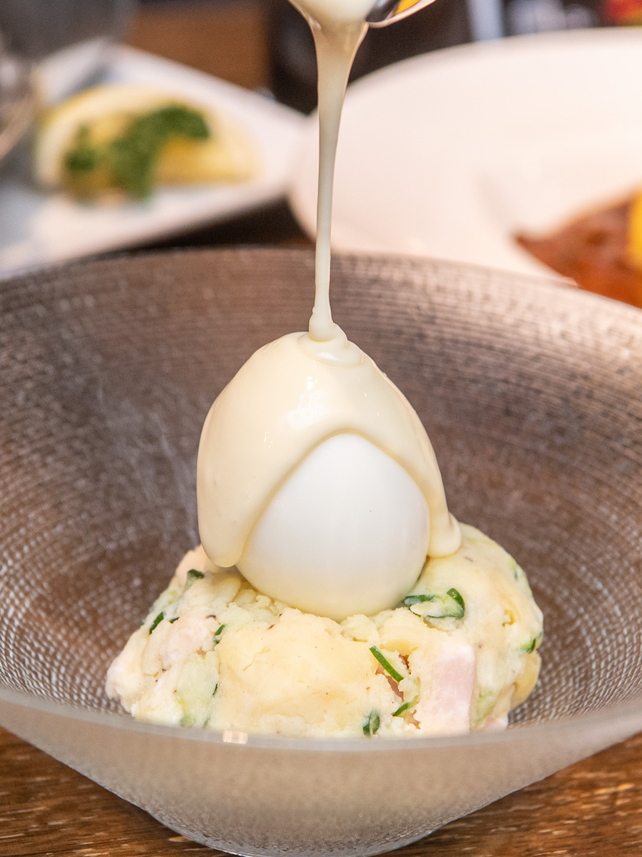 ポテトサラダに半熟たまごを乗せたメニュー。