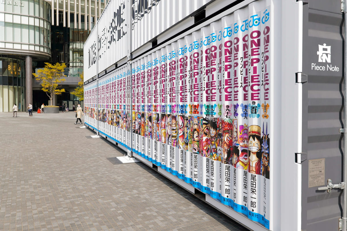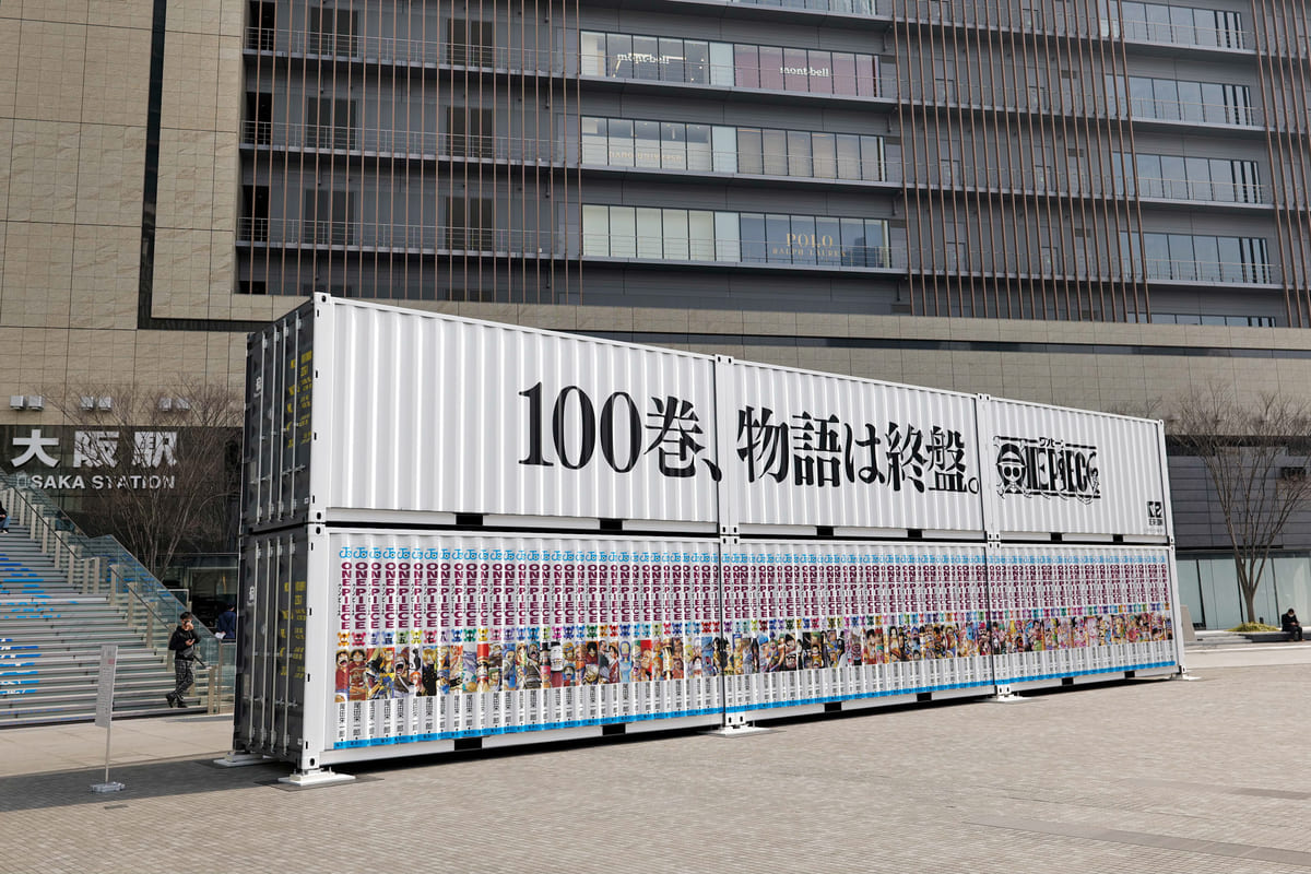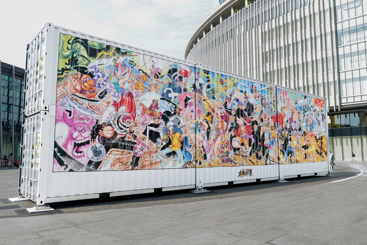 コンテナ表側には「WT100記念 尾田栄一郎描き下ろし 大海賊百景」を、縦5m×横18m特大サイズでプリント展示。