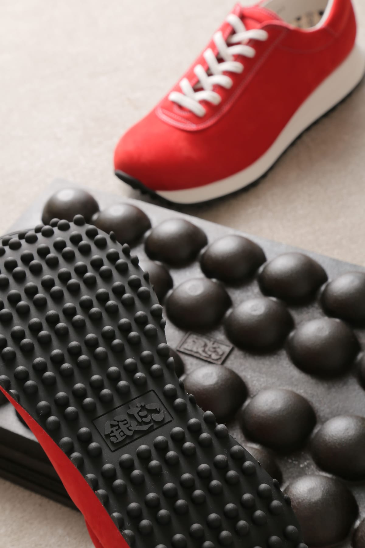 銀だこのブランドカラーである 「紅白」 の色使いを表現しつつ、洗練されたカジュアルで履きやすい表情です。