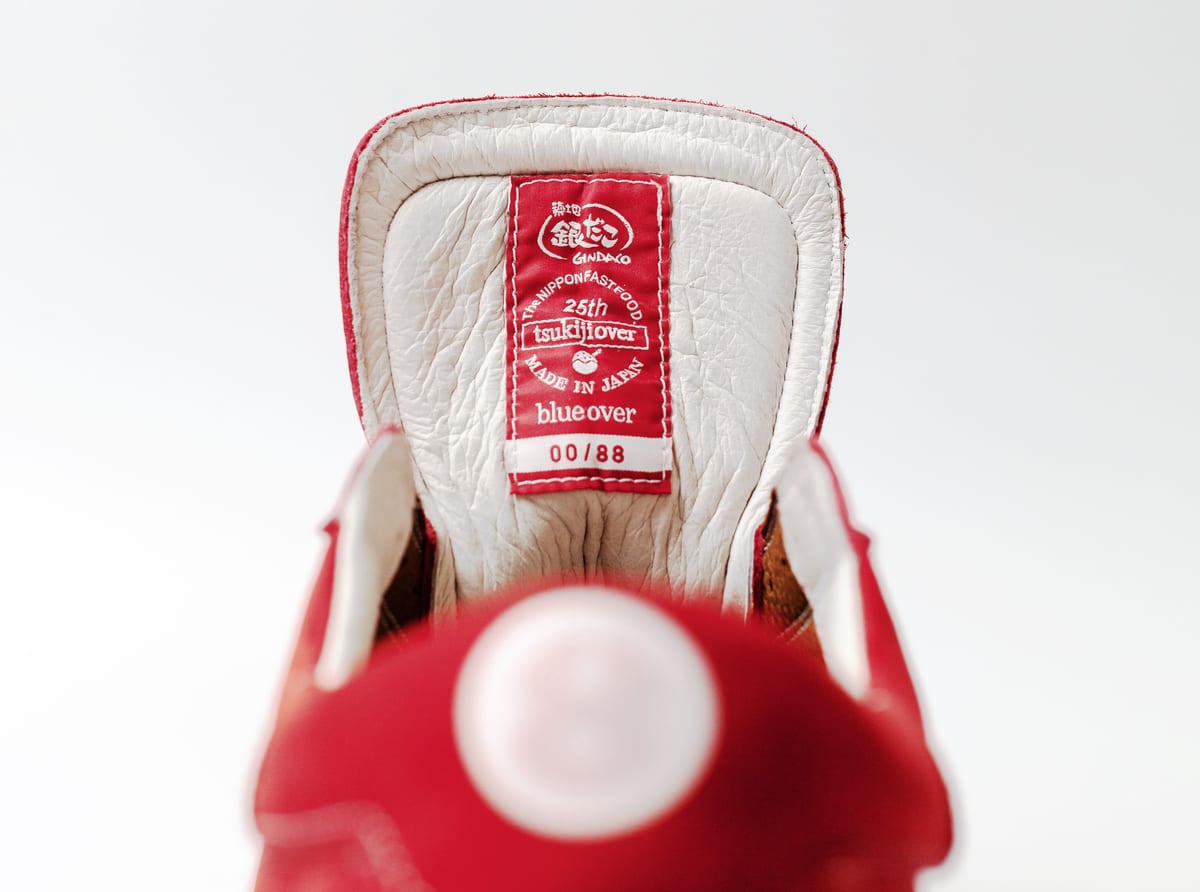 インソール部分は、レトロランニングモチーフに「築地銀だこ」 と 「blueover」 のコラボレーショングラフィック(tsukiji over)を配したオリジナル。