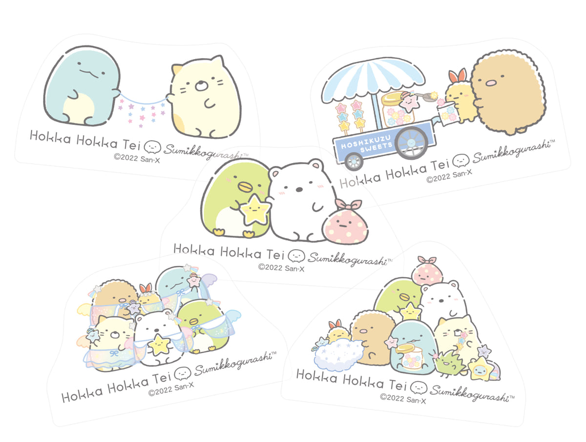 おべんとうのふたや、バラン、おにぎりフィルムに、星空をテーマにしたかわいい「すみっコ」たちのイラストが並びます。