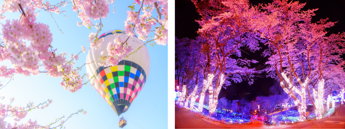 イルミネーションに照らされた2,500本の桜の幻想的な光景を眼下一面に見ることができるおすすめの体験イベントです☆