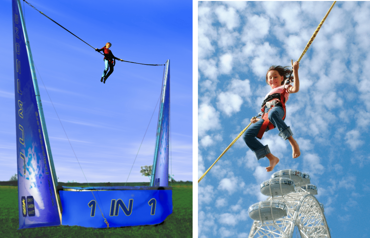 トランポリンを蹴るジャンプ力+トランポリンの反発力+バンジーゴムの伸縮力+ウインチモーターの牽引力を利用して、高さ最大7mもの大ジャンプができる新感覚のアトラクションで、ジャンプしながらお花見を楽しめます。