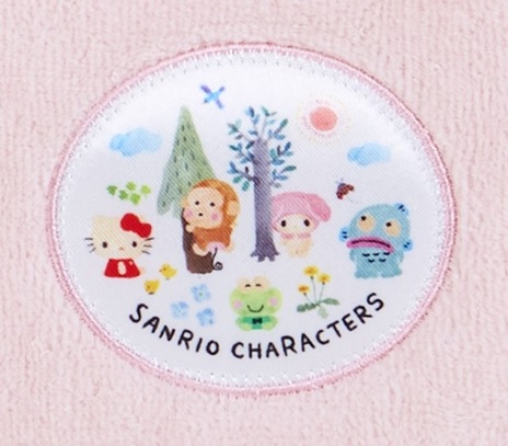 「ハローキティ」をはじめとした、人気のキャラクターが水彩タッチで描かれたワッペンがワンポイント。