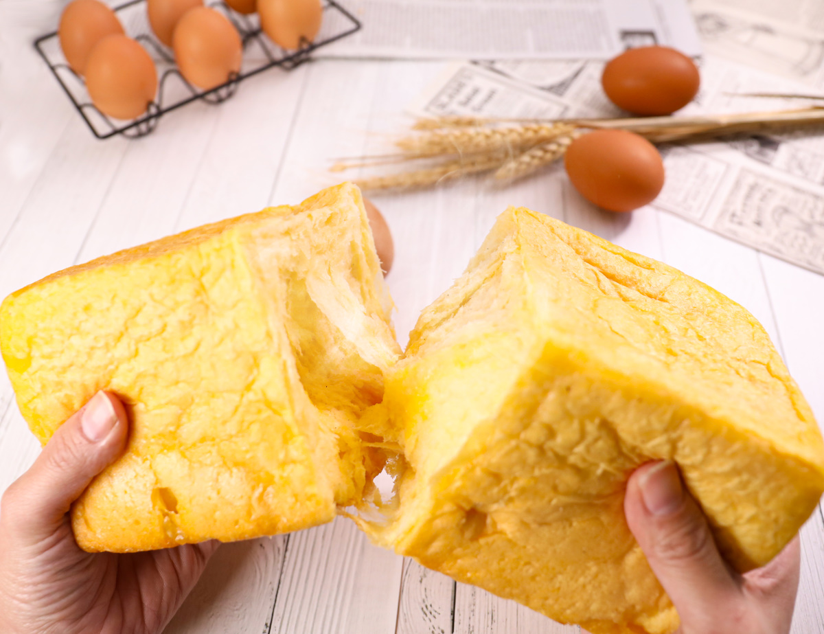 たまごだけで濃厚に“幸せの色”に焼き上げた、こだわり食パンの専門店です。