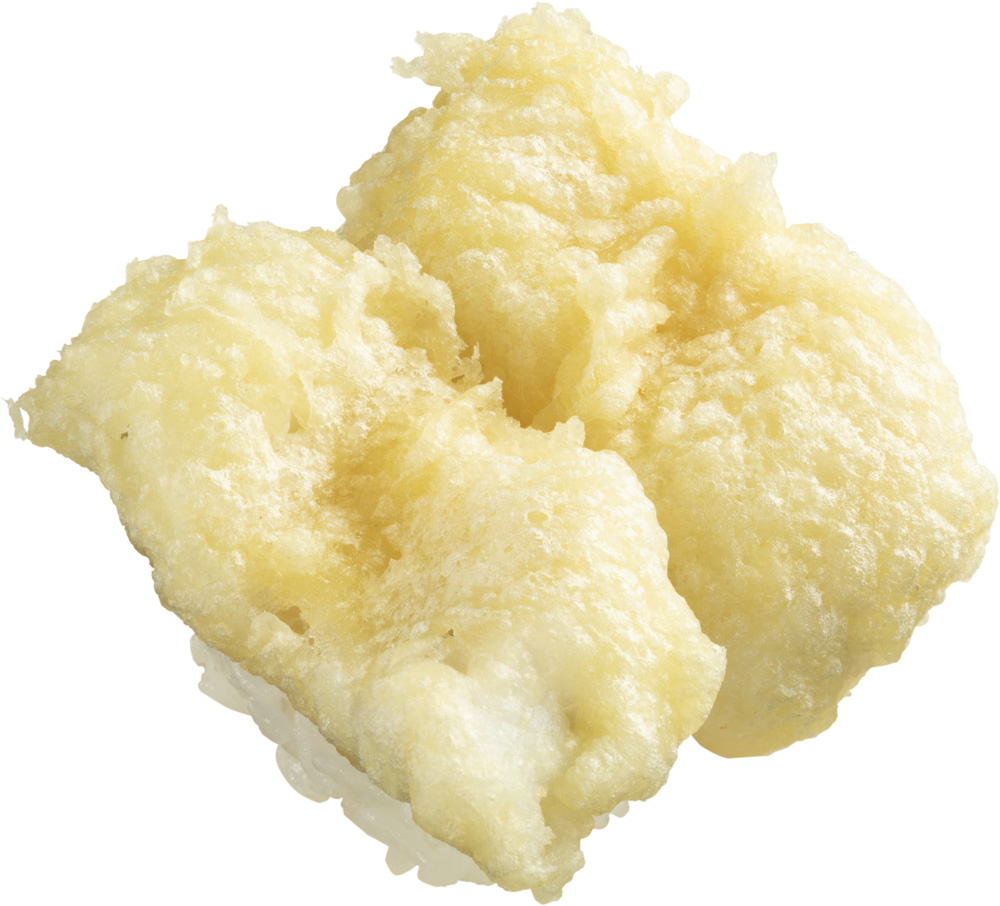国産の穴子をカラッと天ぷらにし、にぎりに仕上げた一品です。