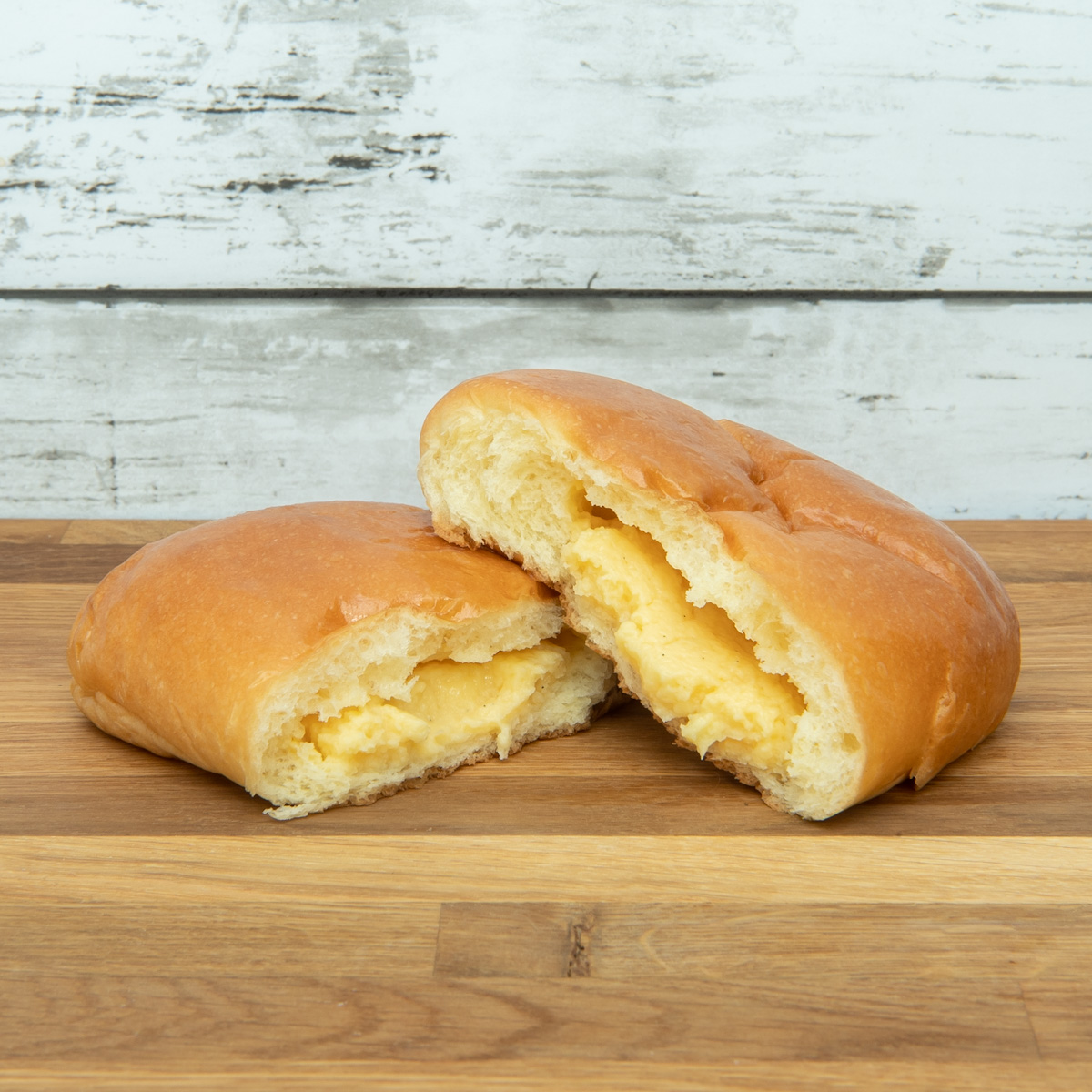 しっとりやわらかいパンと、とろっとなめらかな王道カスタードクリームが絶品のクリームパンです。