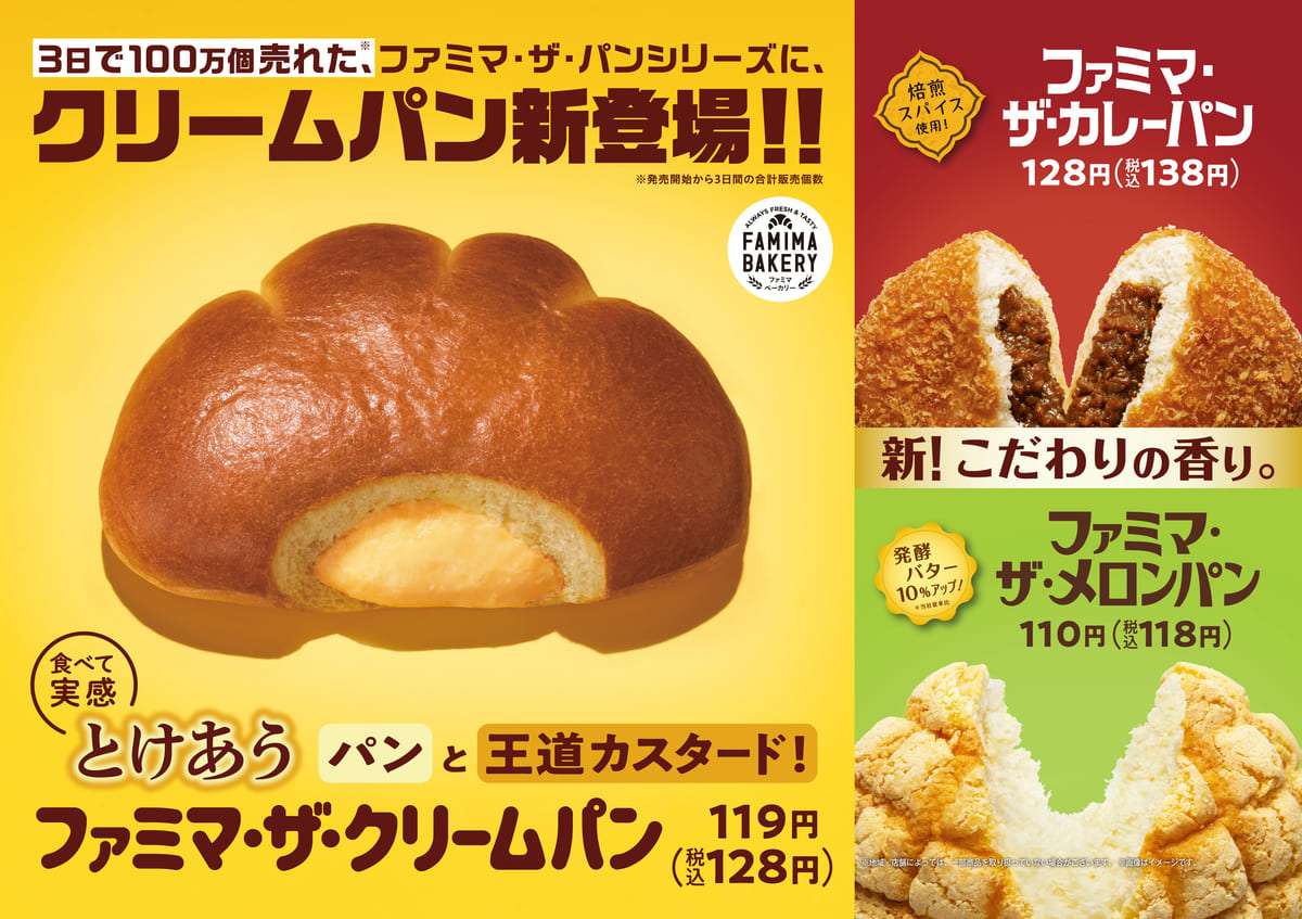 ファミリーマート「ファミマ・ザ・クリームパン/ファミマ・ザ・メロンパン/ファミマ・ザ・カレーパン」