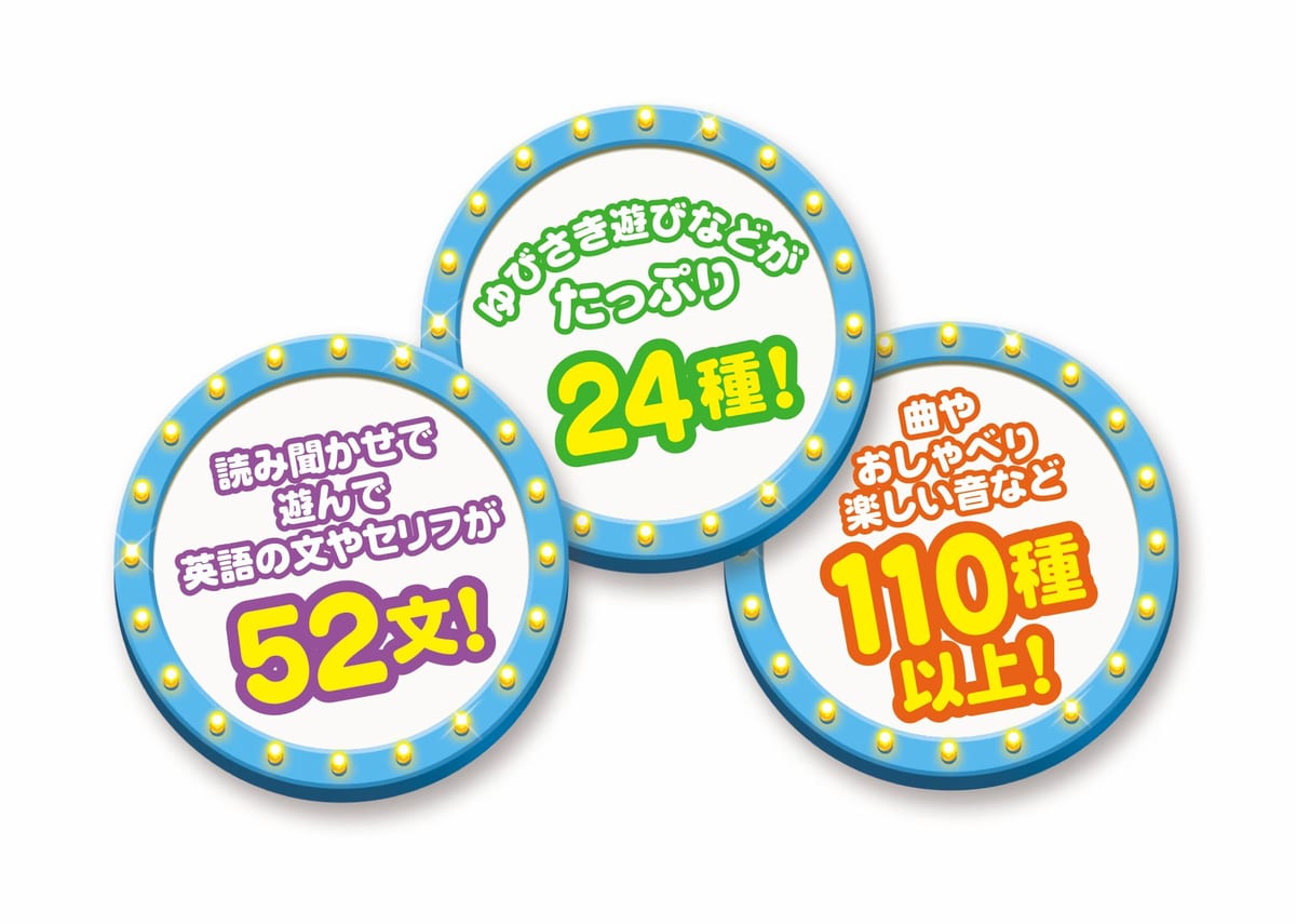 キャラクターのおしゃべりや英語、ゆびさき遊びがたっぷり
