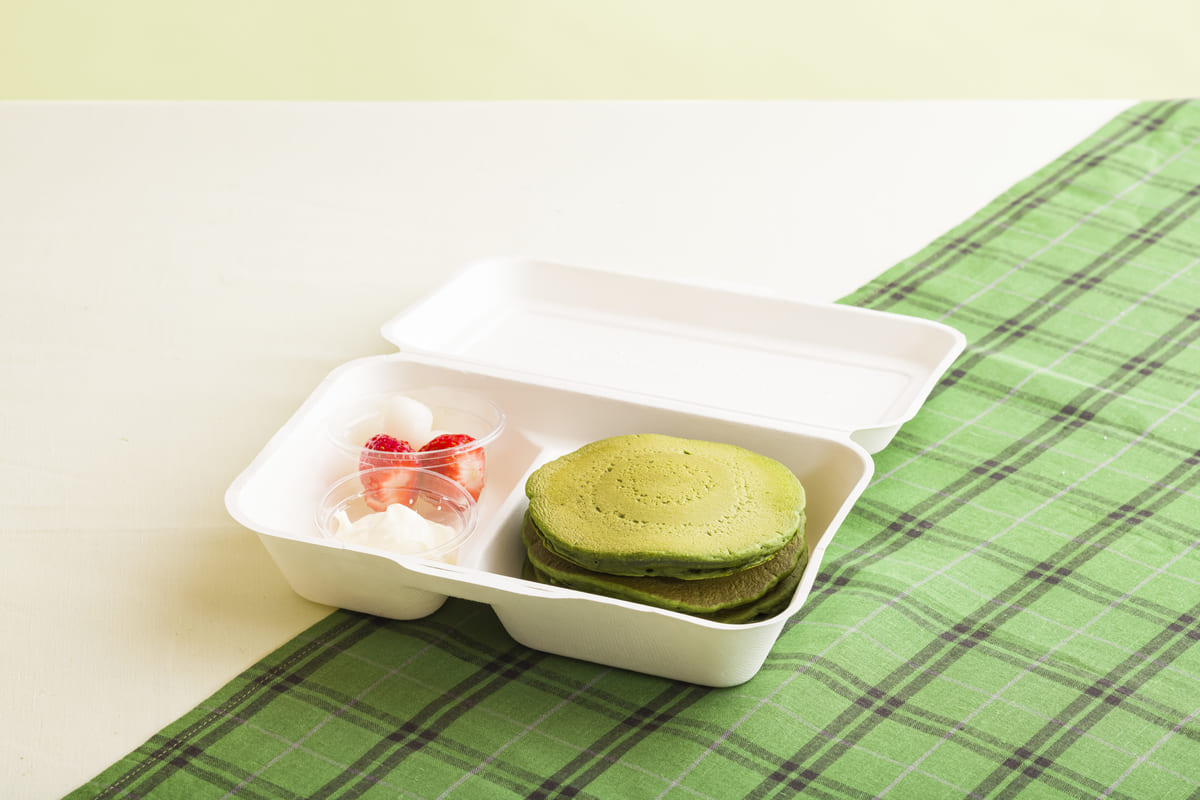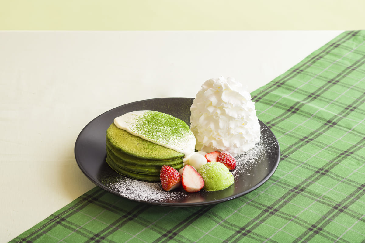 抹茶のガナッシュが溢れ出す抹茶尽くしのパンケーキ。