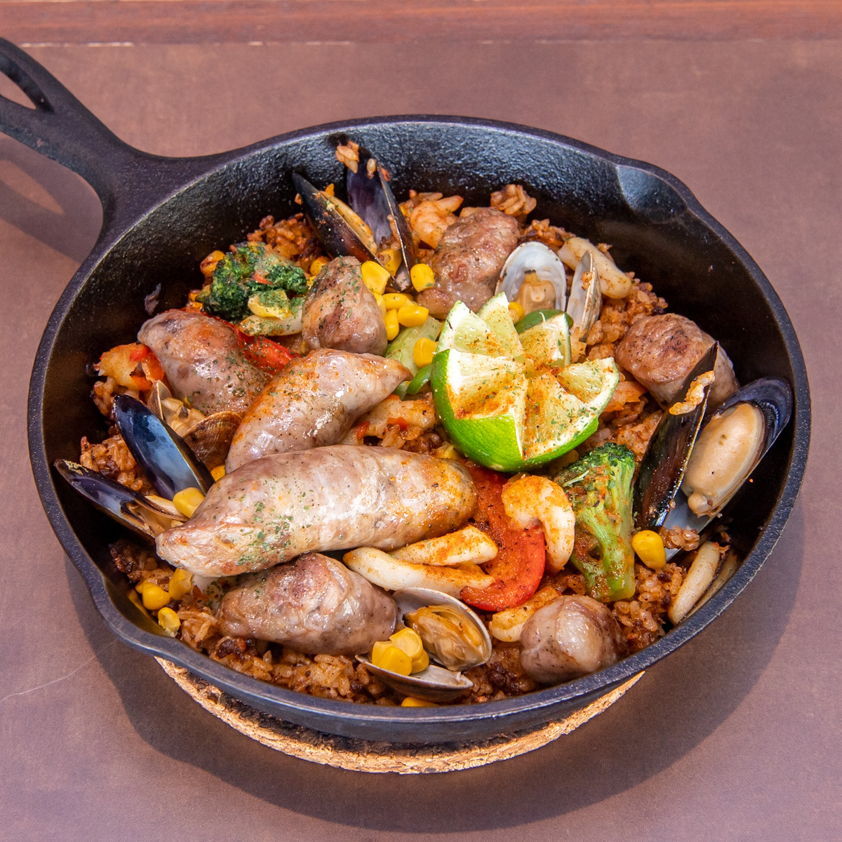山形県「平田牧場」の「三元豚」で作った、旨味たっぷりのサルシッチャを使った贅沢なジャンバラヤです。