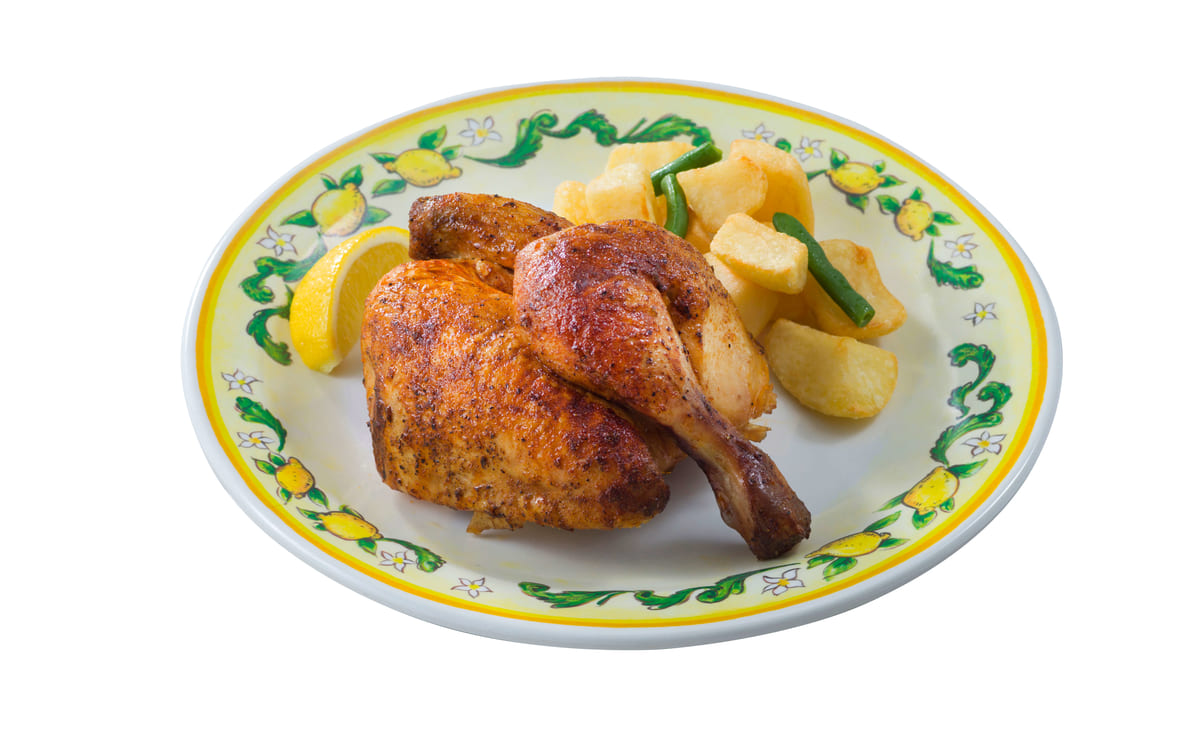 「カフェ・ポルトフィーノ」の代表的な料理、ロティサリーチキン。