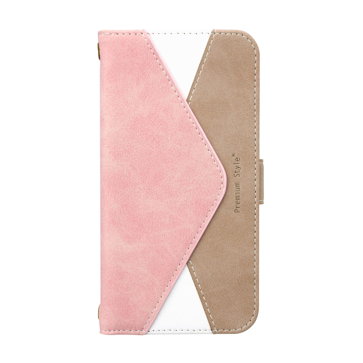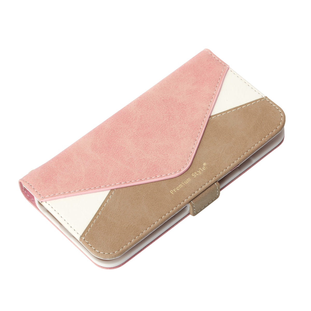 ピンクとベージュがフェミニンなレター型デザインのフリップカバー。