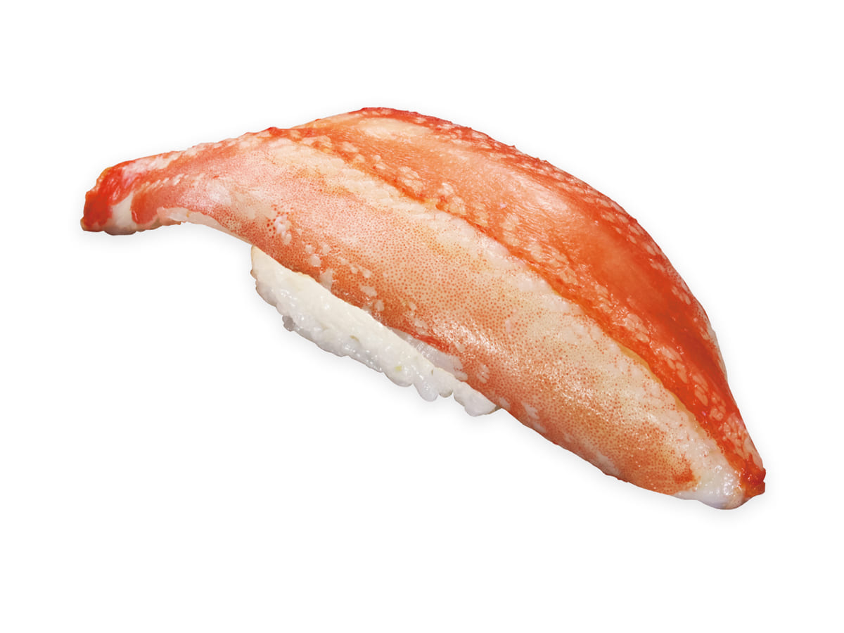 「ボイル本ズワイガニ(一貫)」は、水揚げ後すぐに茹でるなど、特別な加工方法で旨味を凝縮させた本ズワイガニの身をまるごと一本使用。