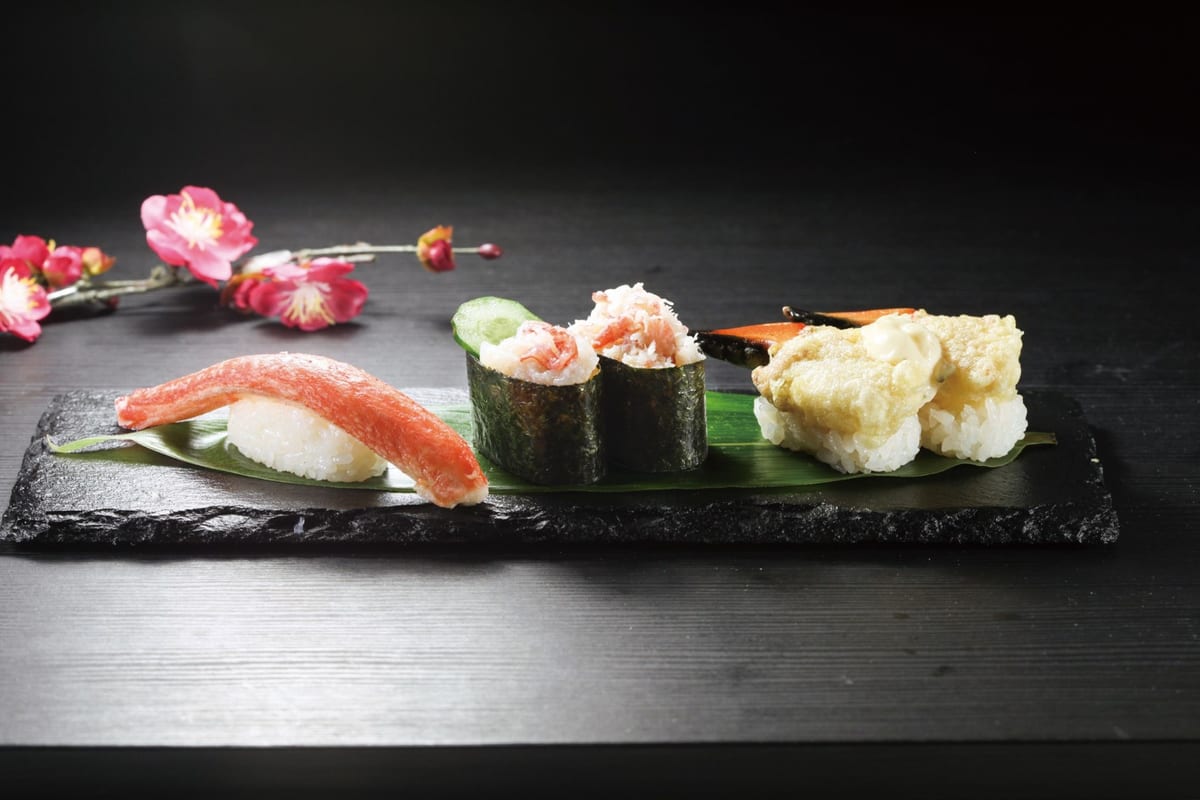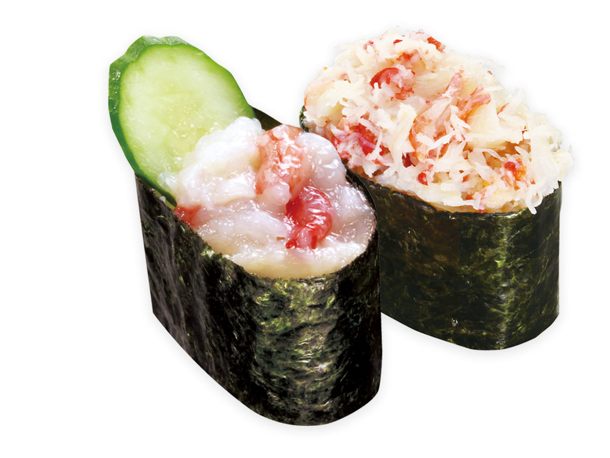 「かに」フェアには、にぎりや軍艦、サイドメニューなどさまざまな「カニ」メニューが登場。
