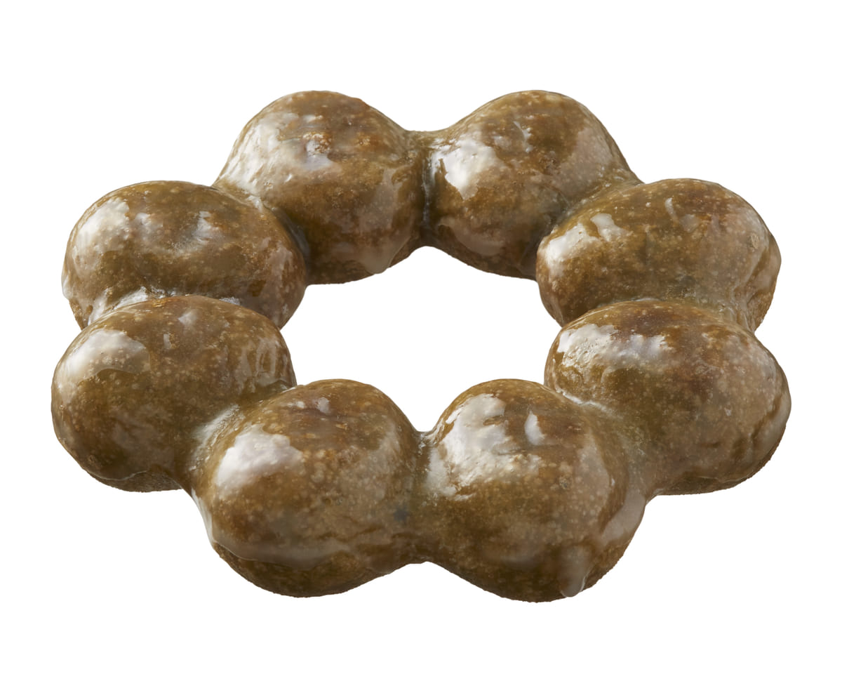 柔らかく、もっちりとした食感が特徴の「ポン・デ・リング 生」に祇園辻利の宇治抹茶を練り込み、きなこをまぶしたスイーツです。