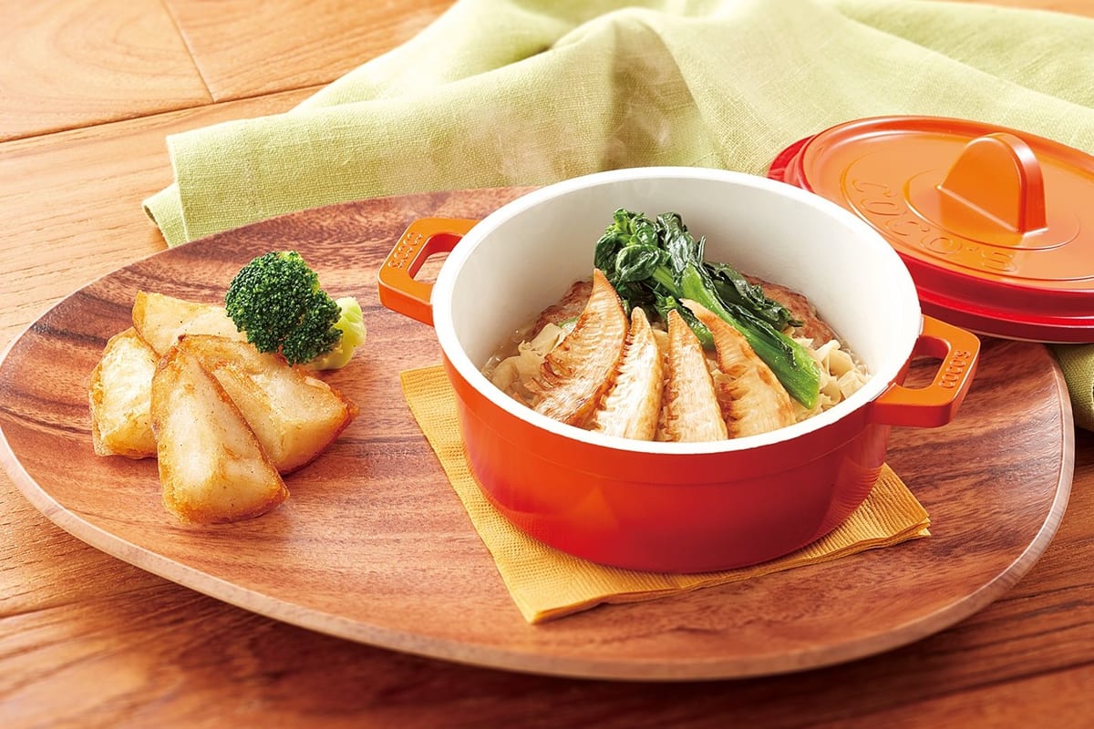 ココスの新定番「ココットハンバーグ」に、筍と菜の花を合わせた季節のメニュー。