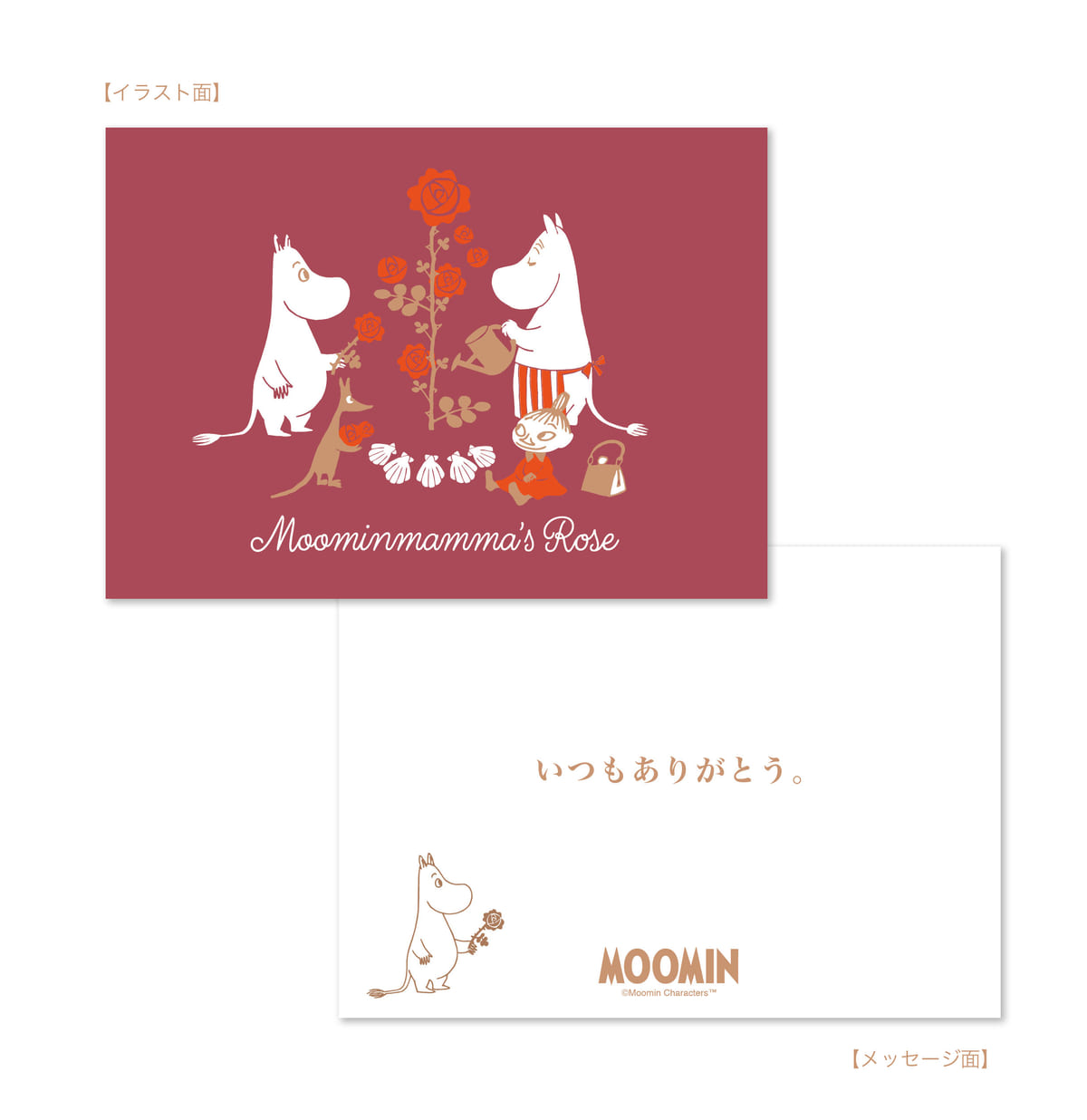 「Moominmamma’s Rose」限定デザインのグッズを購入すると、オリジナルカードをプレゼント。