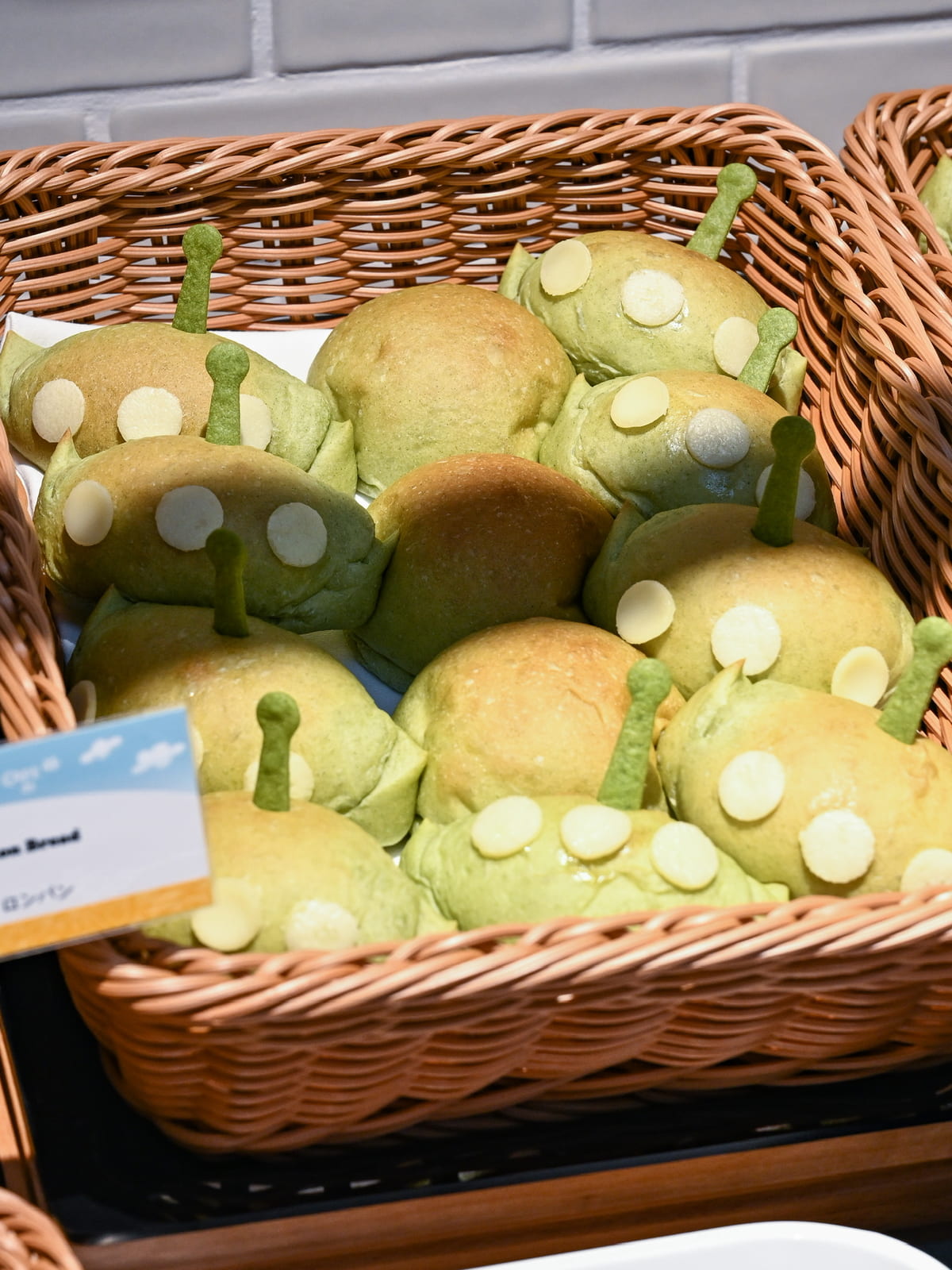 「リトル・グリーン・メン」をモチーフにした、ほうれん草を練り込んだパン。