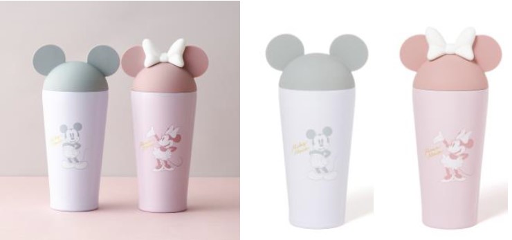 ミッキー、ミニーモチーフがシリコンの蓋になった、キャッチーなデザインがポイントです。