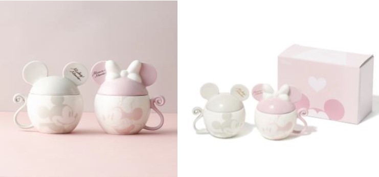 ミッキーとミニーモチーフを落とし込んだキャッチーなデザインのペアマグ。