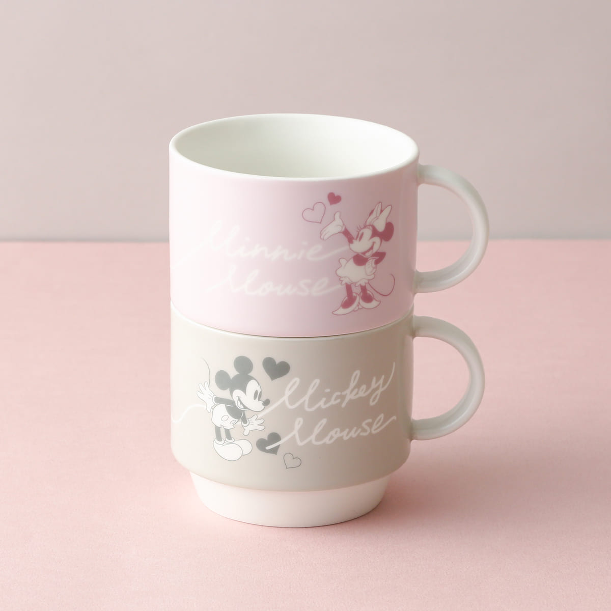 ディズニー ペアスタッキングマグ ピンク×グレー
