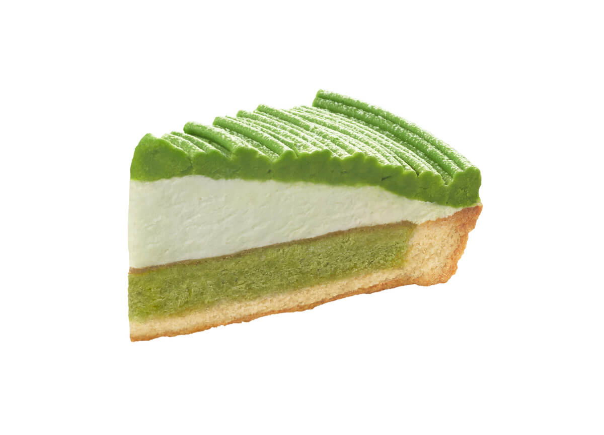 香ばしく焼き上げたタルト生地に、宇治抹茶のケーキ生地、宇治抹茶を使用したホイップクリーム、上品な白あんと宇治抹茶を使用したクリームをのせた「宇治抹茶モンブランタルト」
