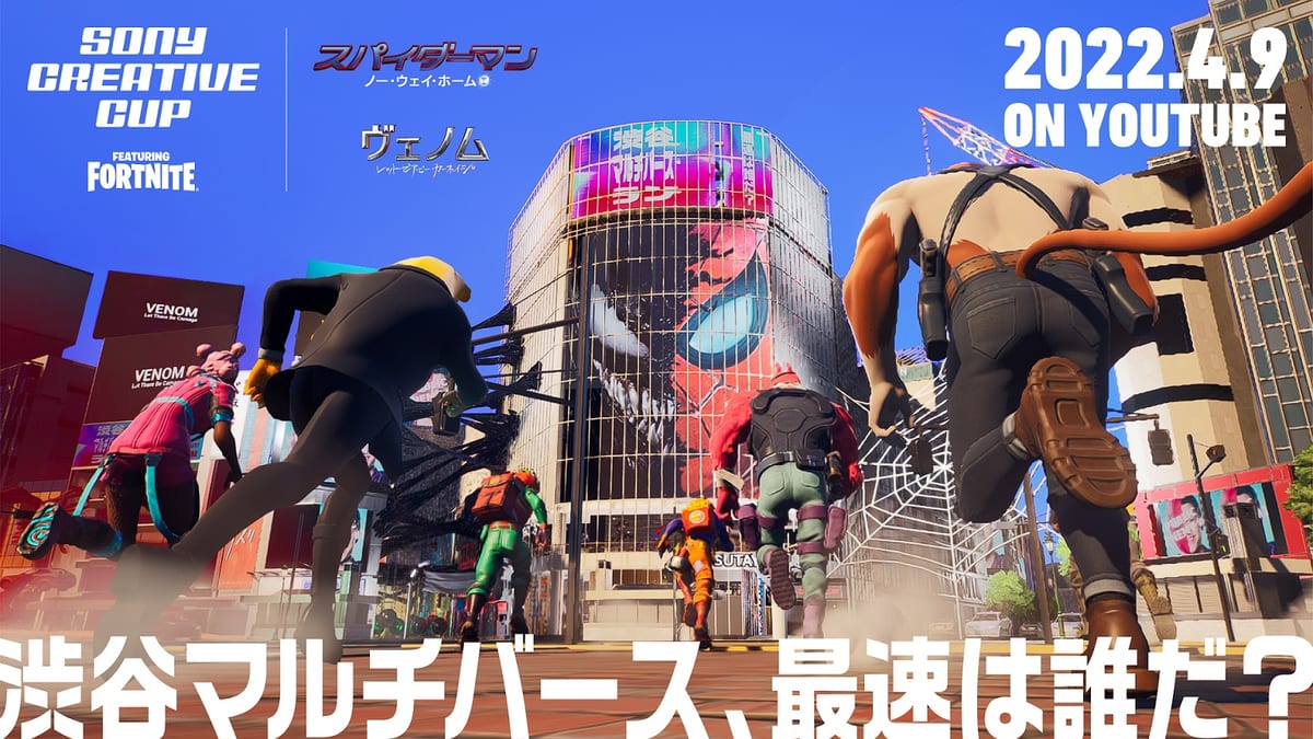 2022年4月9日開催の「Sony Creative Cup featuring Fortnite」に登場する「スパイダーマン&ヴェノム」オリジナル渋谷マップの紹介でした。