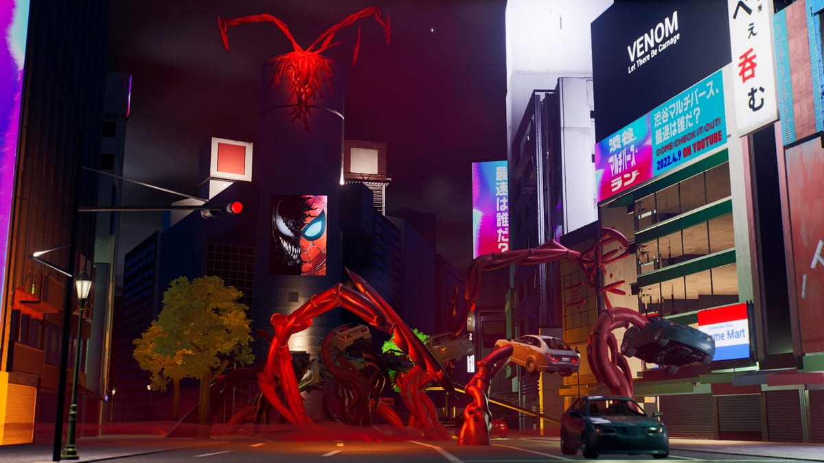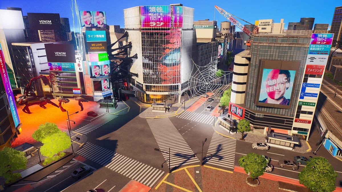 「Sony Creative Cup featuring Fortnite」の開催に合わせ、映画『スパイダーマン:ノー・ウェイ・ホーム』と『ヴェノム:レット・ゼア・ビー・カーネイジ』の世界観を再現した渋谷マップを作成。