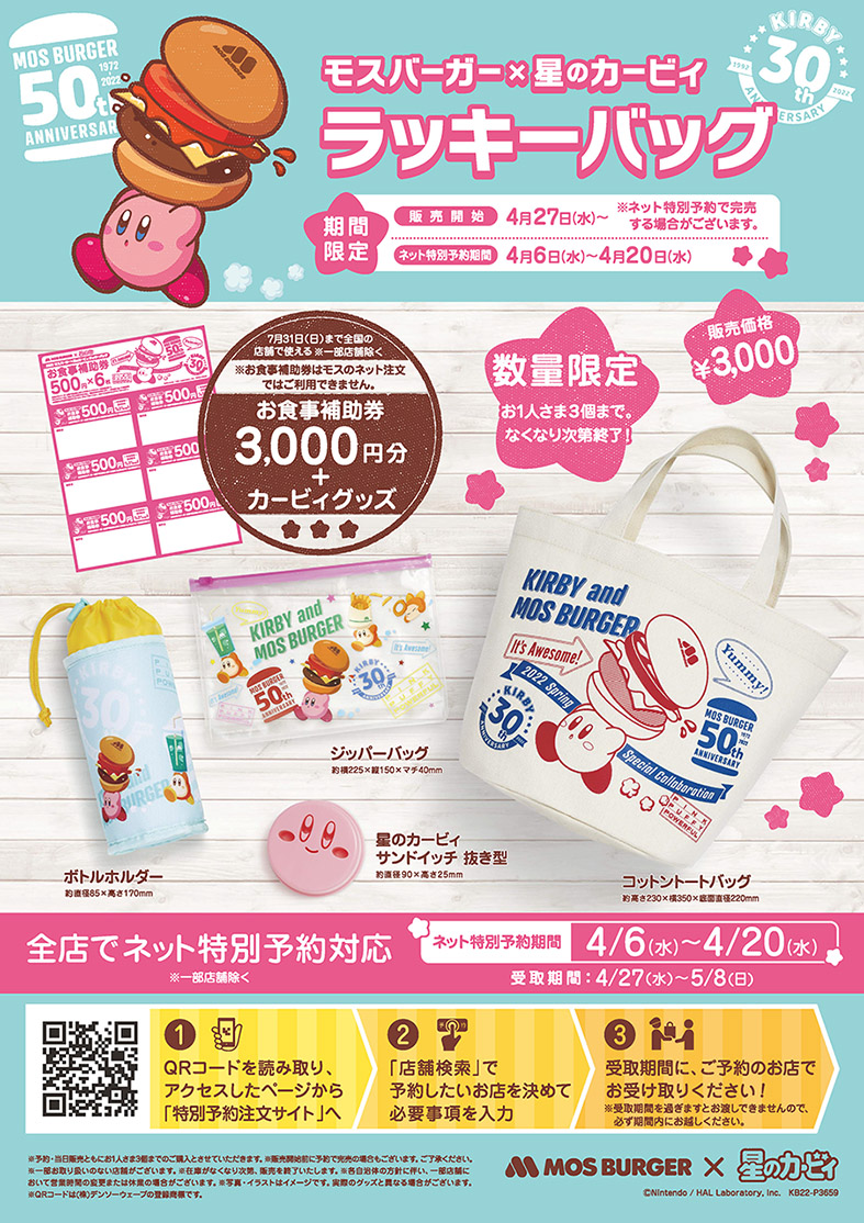 全国のモスバーガー店舗にて2022年4月27日より数量限定で販売される『星のカービィ』ラッキーバッグの紹介でした☆